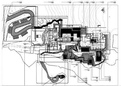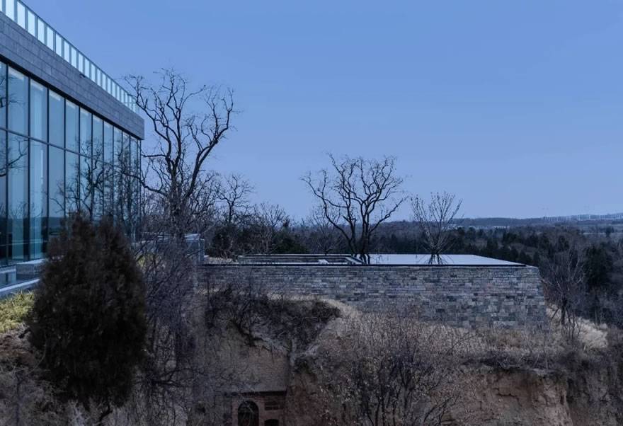 項目處于太行山余脈的黃土丘陵區(qū)。順著山脈的變化,地塊旁邊形成一條深深的峽谷。場地內(nèi)有多個河南傳統(tǒng)的窯洞。初到這里非常的荒蕪,但正是這種荒蕪、這種原始自然的力量,將太行山的經(jīng)脈肌理勾勒得清晰可見。