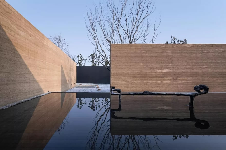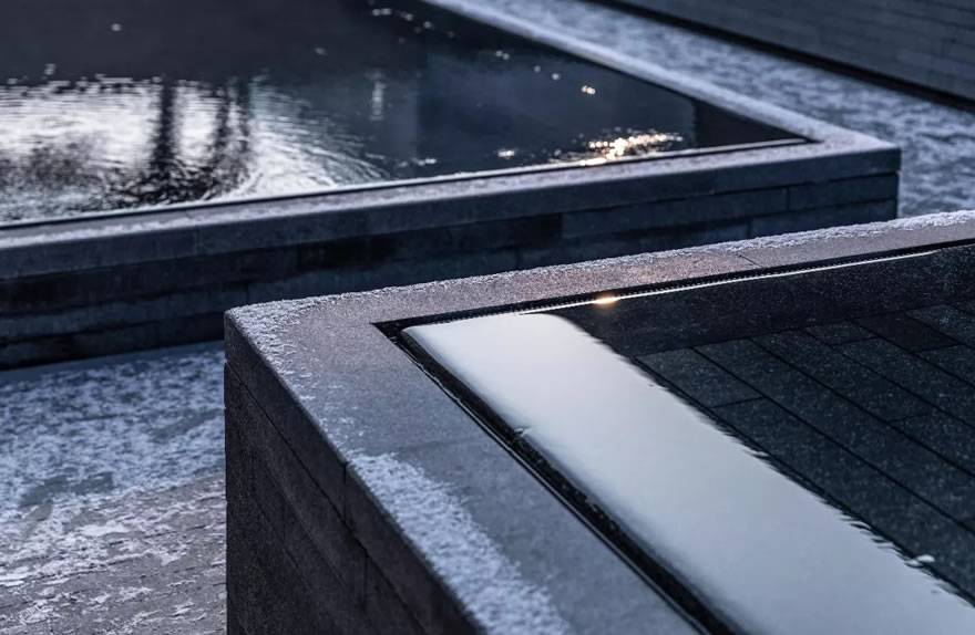 放置了一處提取傳統(tǒng)篆書元素設(shè)計的水中雕塑,這處雕塑,形成了空間的一個視覺焦點。