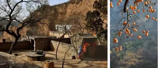黃土、石墻、窯洞、掛滿金黃果實的柿子樹