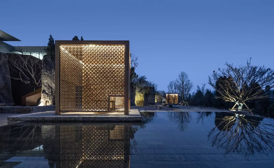 在空曠的場所中設(shè)計一個茶亭,成為該場所的視覺聚焦點,同時這里更是關(guān)于光線變幻設(shè)計的精妙之筆。