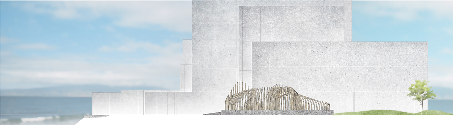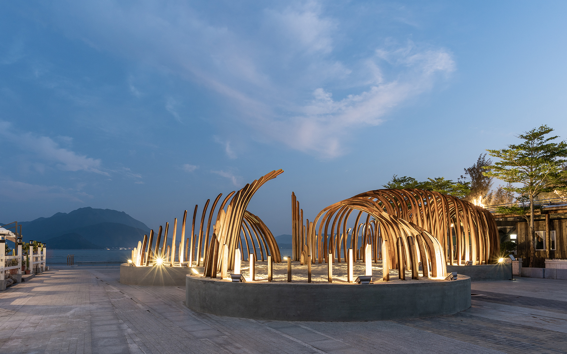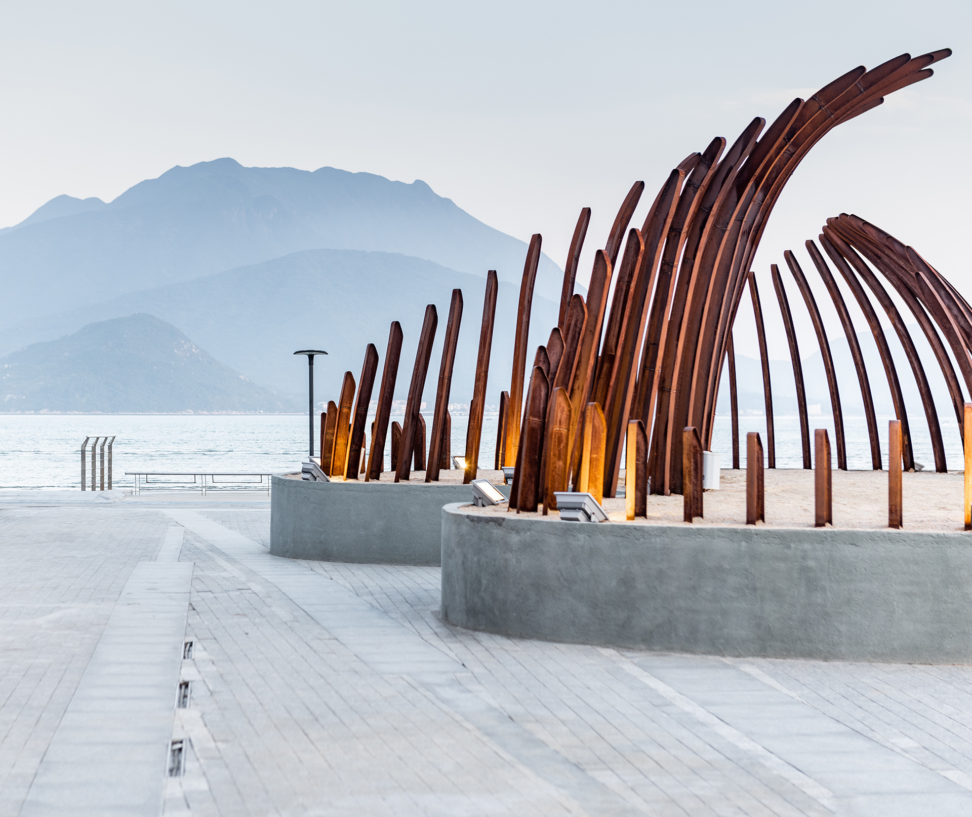 我們通過“海之韻”裝置表達(dá)對濱海城市區(qū)域活化的探索與期待,同時對城市古城、自然生態(tài)的深刻回顧及思考。在城市居住環(huán)境中,創(chuàng)造一條感受和體驗(yàn)“歷史”與“生態(tài)”的藝術(shù)通道。