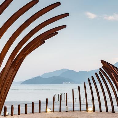 作品“海之韻”裝置是賽瑞景觀(CSC LANDSCAPE)所為2019深港城市/建筑雙城雙年展(深圳)大鵬新區(qū)分展場創(chuàng)作的一個作品,參展板塊為“時間之?!保═he Sea of Time)。此作品設(shè)計時間89天(2019.9.1-2019.11.27),現(xiàn)場搭建時間29天(2019.11.27-2019.11.25),雙年展于2019年12月開幕,展期為90天。