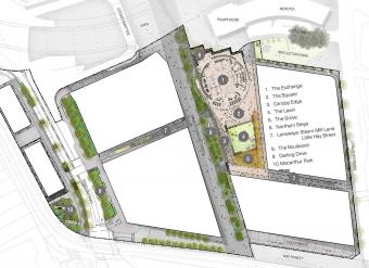 達令廣場被切分為尺度更小但仍互相連接的一系列空間,使其能夠滿足各種商業(yè)活動和社區(qū)集會的同時,保持人性化尺度的日常使用需求。主要包括以下幾個部分:
