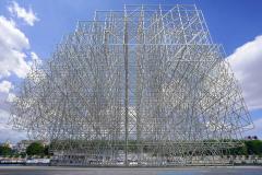 天馬行空的Vincent leroy最近又有了新的靈感:用數(shù)千根腳手架管打造一片輪廓模糊的巨型星云。在城市背景的映襯下,模糊的體量猶如一塊巨大而柔軟的棉質(zhì)材料,給人異常愉悅的觀感。VL為該裝置開發(fā)了模糊的云朵、星云和銀河系等不同形式,其建筑輪廓也永遠(yuǎn)讓人難以捉摸。
