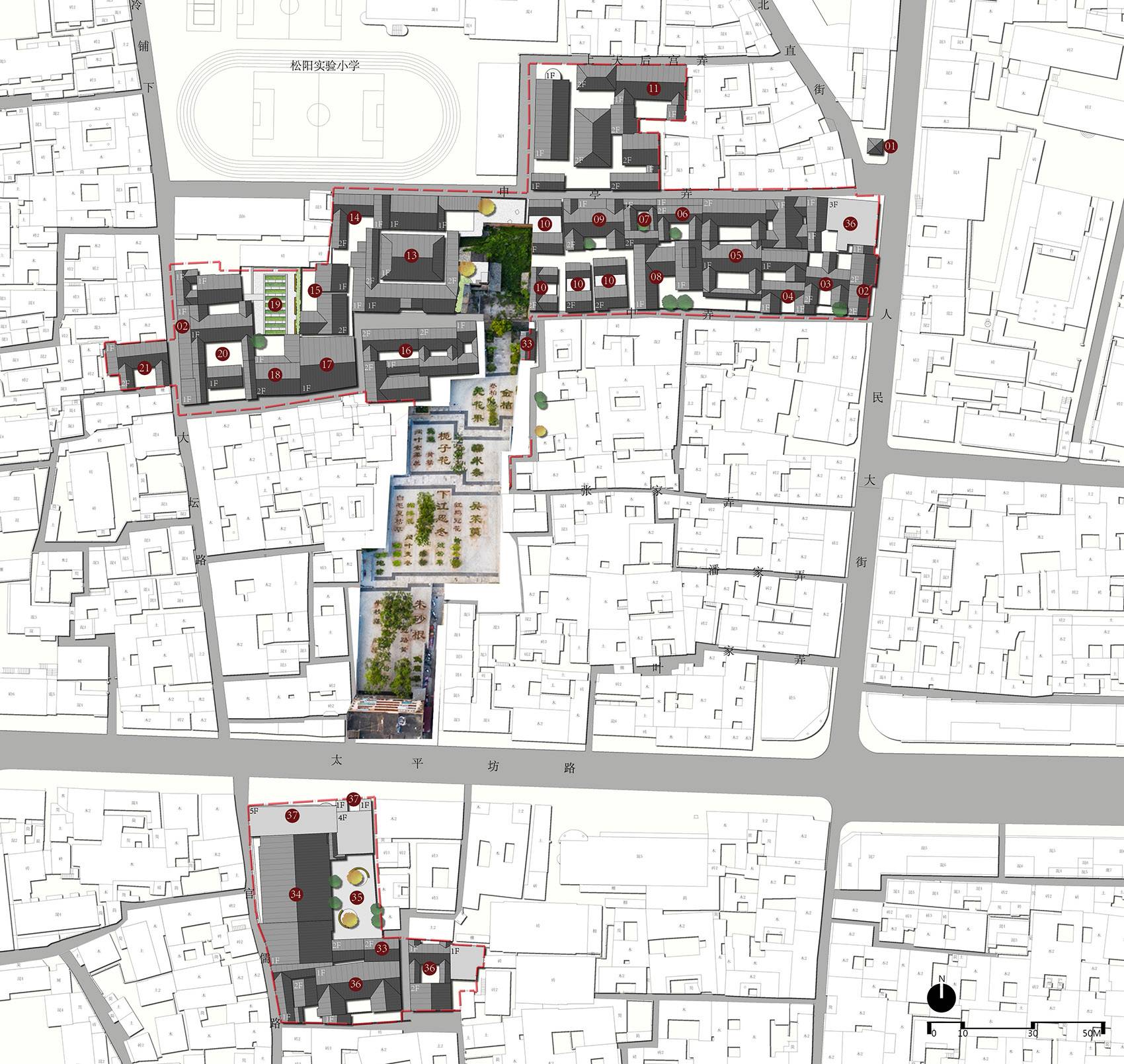 ▲鳥瞰,項(xiàng)目位于歷史街區(qū)中