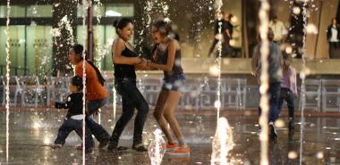 ▲互動噴泉游戲:包含216個噴頭的噴泉有三種不同的工作模式:適合參與互動的噴氣模式、用來映襯壁畫的膜狀模式,以及舉辦活動時的干燥模式。
