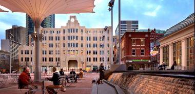 得克薩斯州熱情好客的風土人情總是將傳統(tǒng)價值觀與真切美好的玩樂體驗融為一體。沃思堡的圣丹斯廣場就是這種人情風貌的集中體現(xiàn):在這里,每個人都能體會到家一般的感覺。這座原本作為停車場的廣場位于城市主街,每周都會吸引數(shù)以千計的游客前來體驗以豐富建筑細節(jié)為背景的生動場面。無論是在寧靜的早晨或是熱鬧的夜晚,廣場上的水景和燈光都扮演著公眾生活中的重要一環(huán)。互動噴泉和巨大的可調節(jié)遮陽傘為人們帶來游戲和放松的機會,以別處沒有的方式完善了多樣化的社區(qū)功能,涵蓋了從日常鍛煉到節(jié)日慶典等各種各樣的活動內容。這一充滿活力的社交樞紐為城市提供了最安全、最干凈,同時最適合步行者們休閑放松的場所之一,因而也被人們賦予了“沃思堡之心”的美名。
