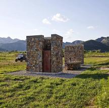 該項(xiàng)目被設(shè)計(jì)成露營(yíng)區(qū)最基本的基礎(chǔ)設(shè)施,因?yàn)楫?dāng)?shù)氐耐恋胤ㄒ?guī)不允許新建任何類型的新結(jié)構(gòu)或有屋頂建筑。因此,廁所只是一系列的圍墻設(shè)計(jì)。