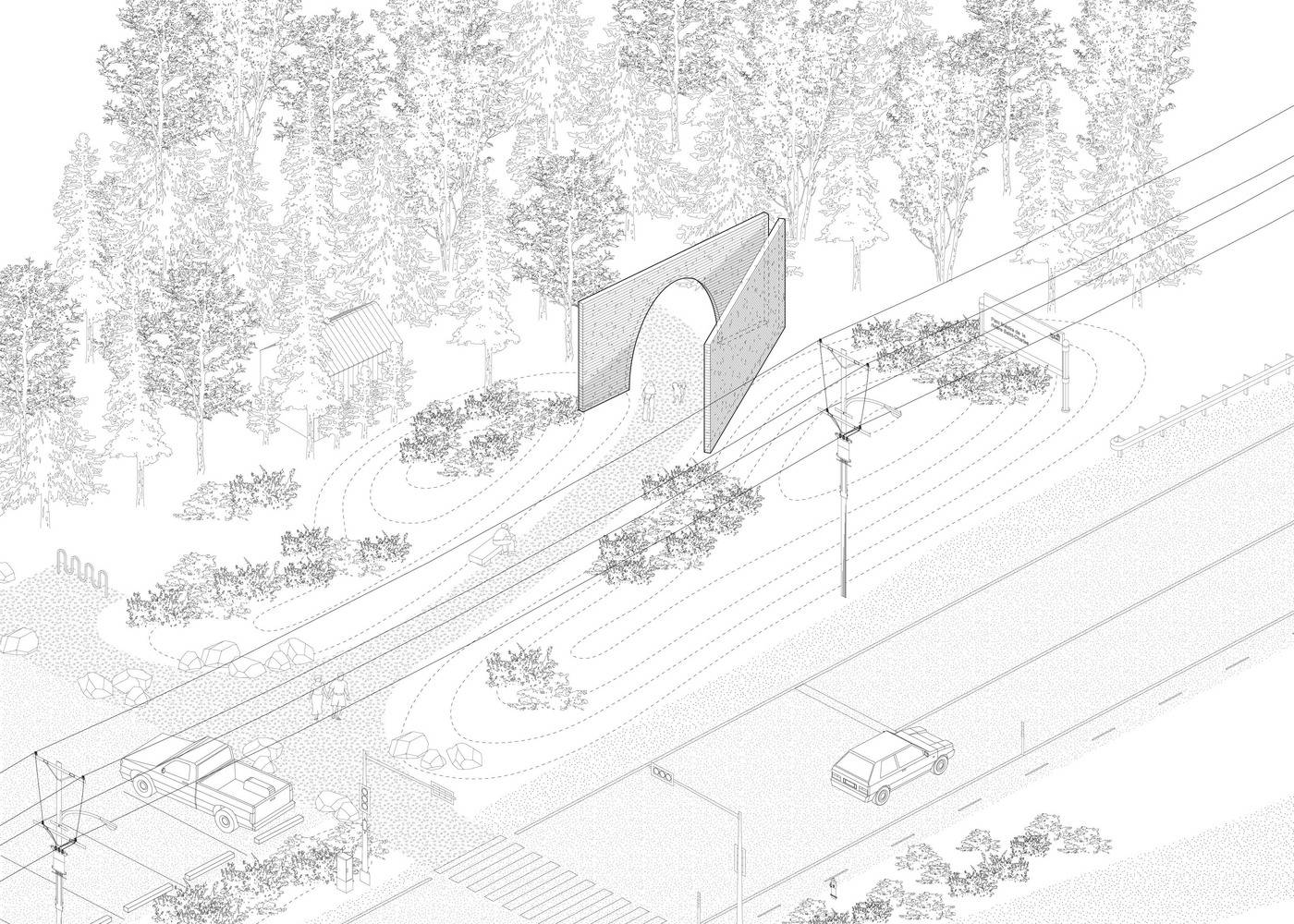 這個作品同時作為公園路徑的起點與終點,為行人帶來一個冥思的契機,如同一個催化因子,觸動聯(lián)想與思索,引發(fā)人與自然景觀新的聯(lián)系體驗。