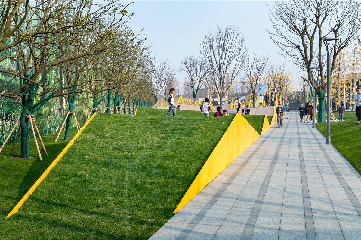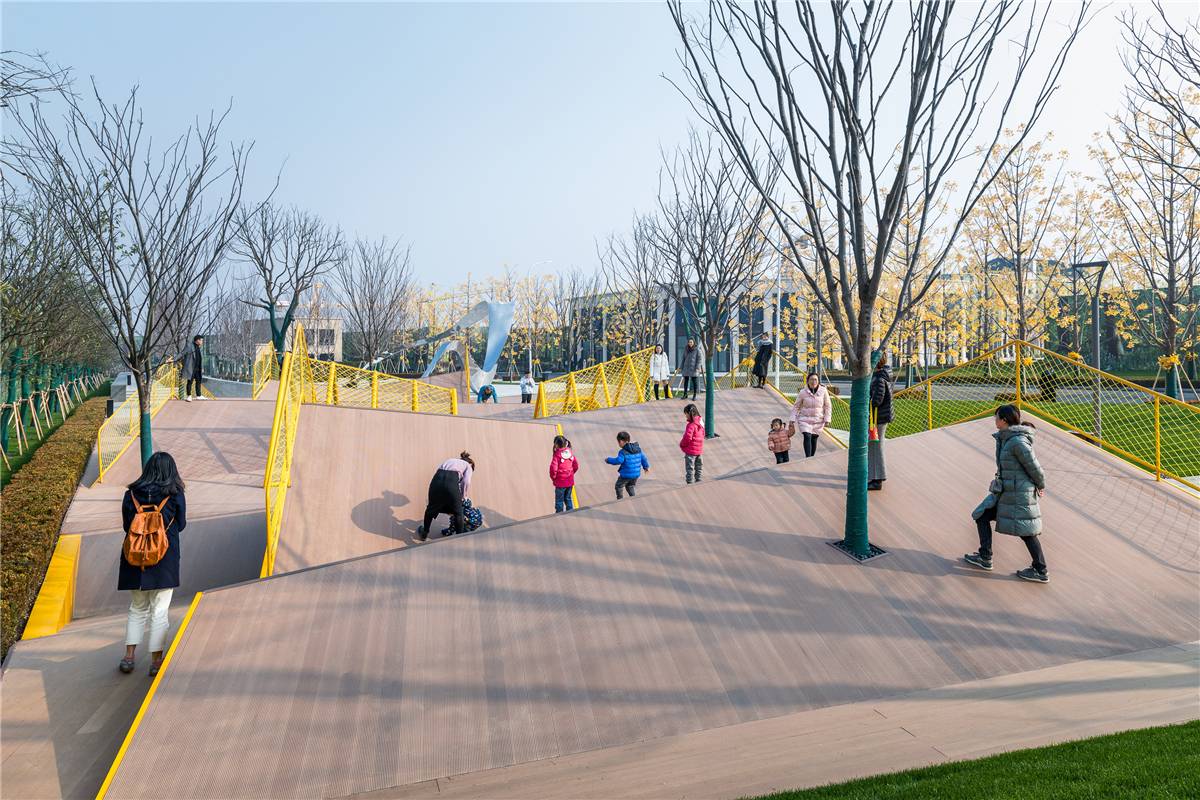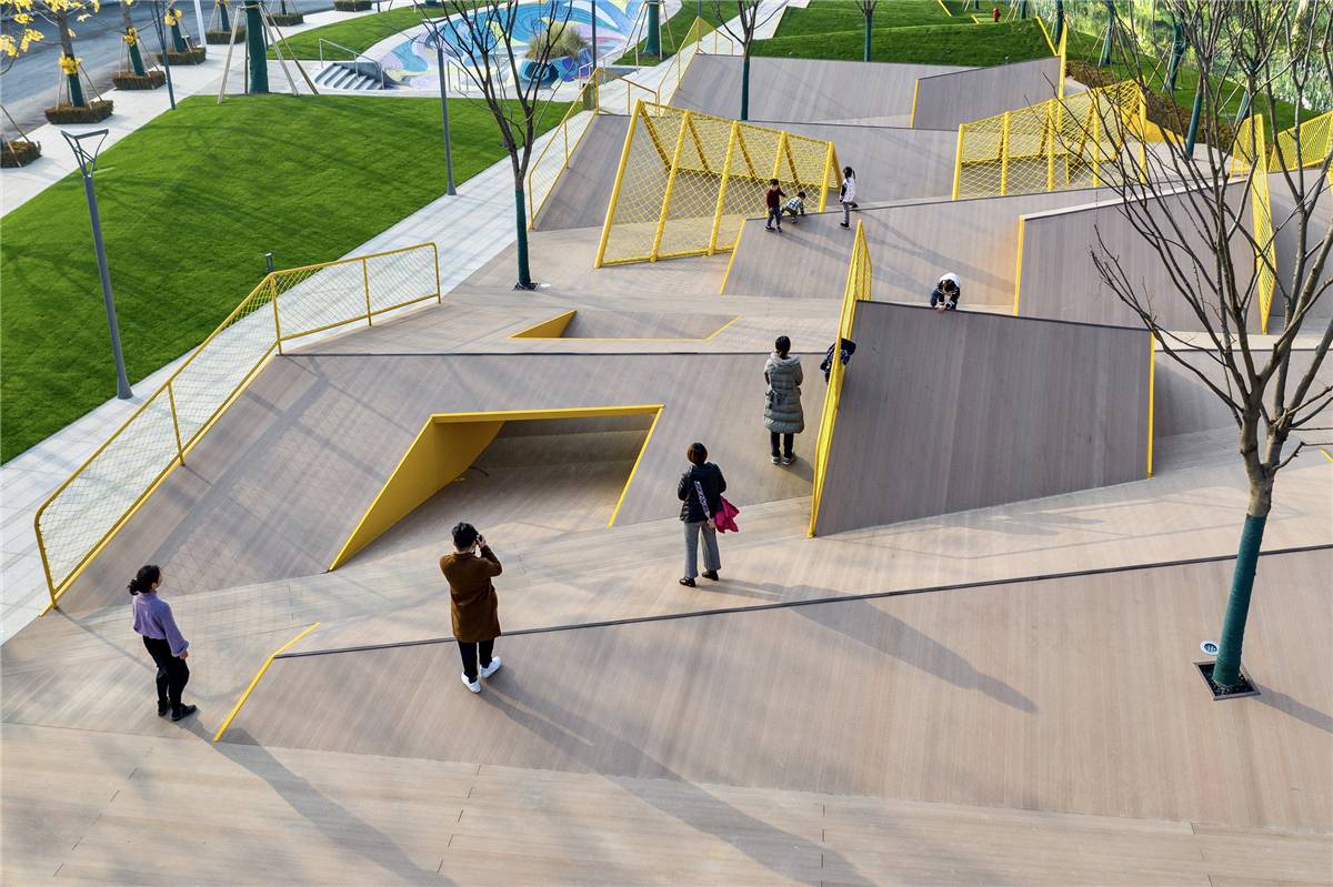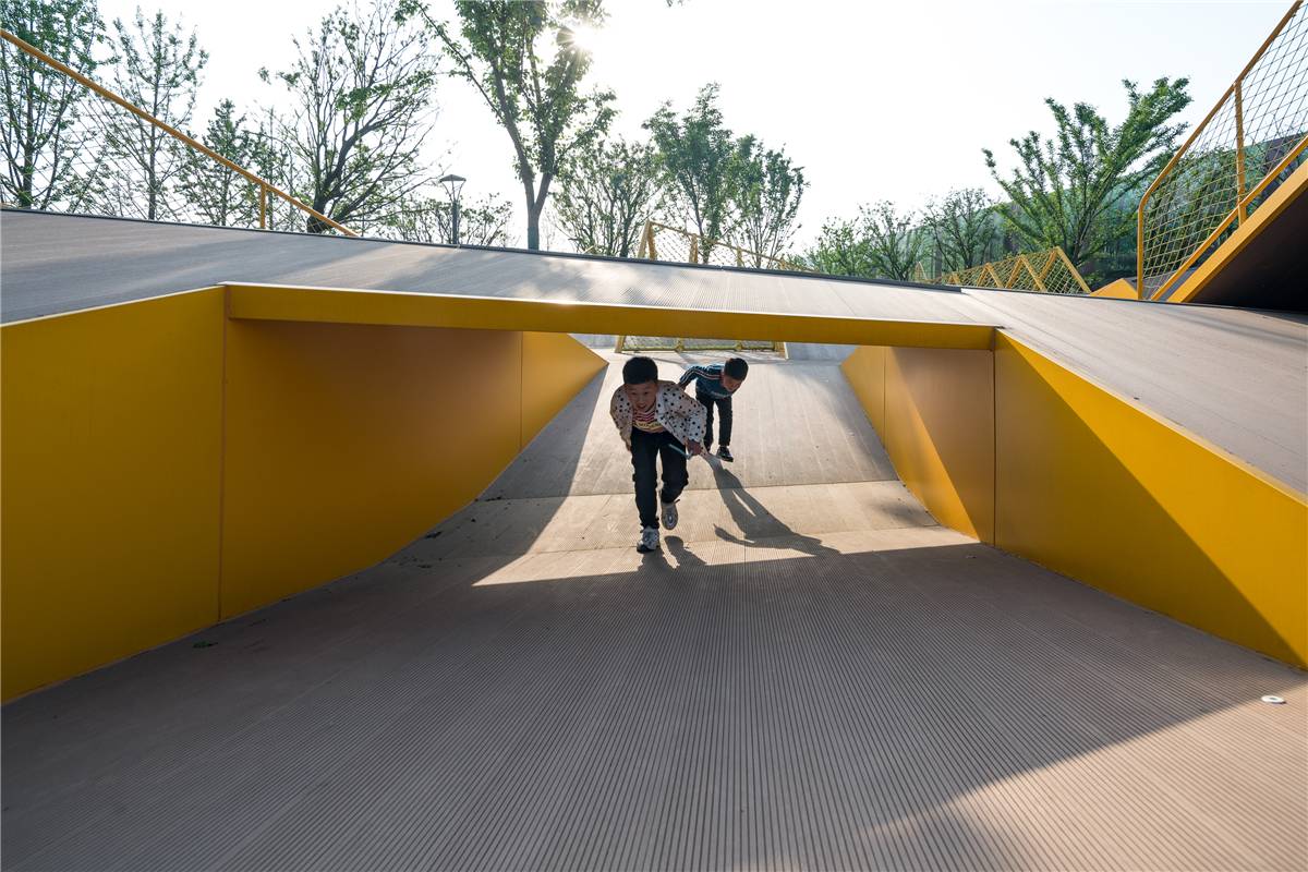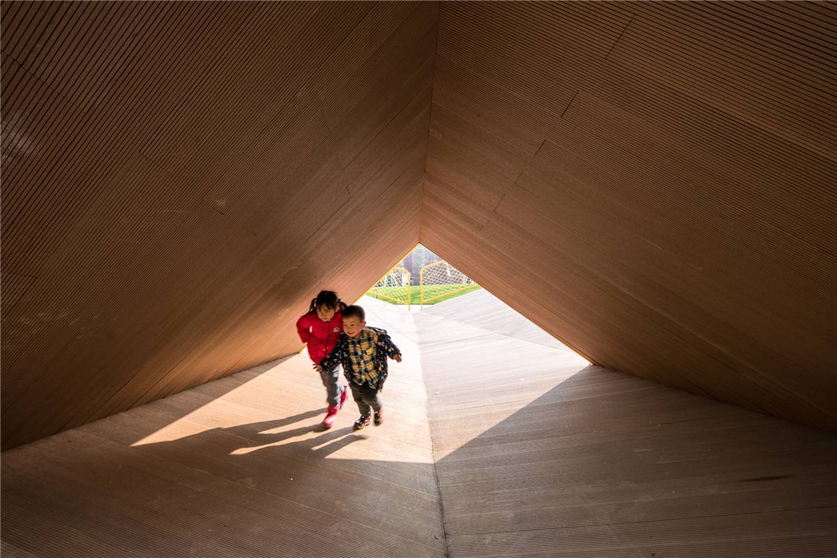 In the design of the Folds, we deliberately minimized the use of playground equipment. We believe that the folding landform can encourage children to perceive the land with their hands and feet. Children can run, climb, play Hide and Seek, and decide how to have fun by themselves.