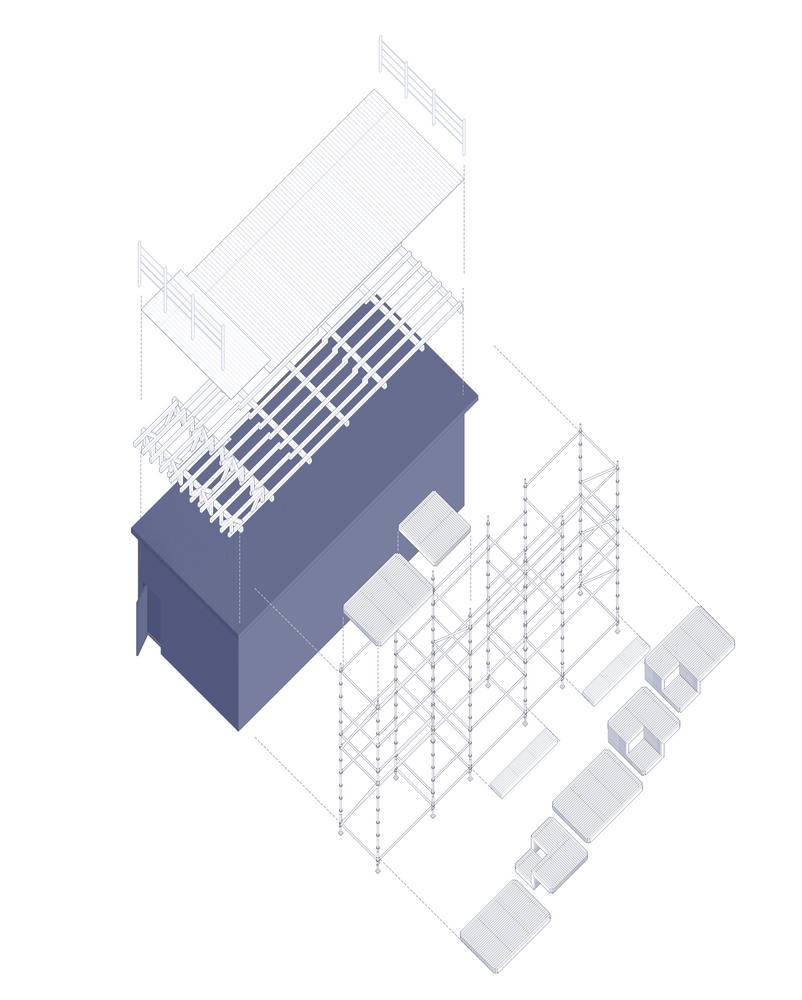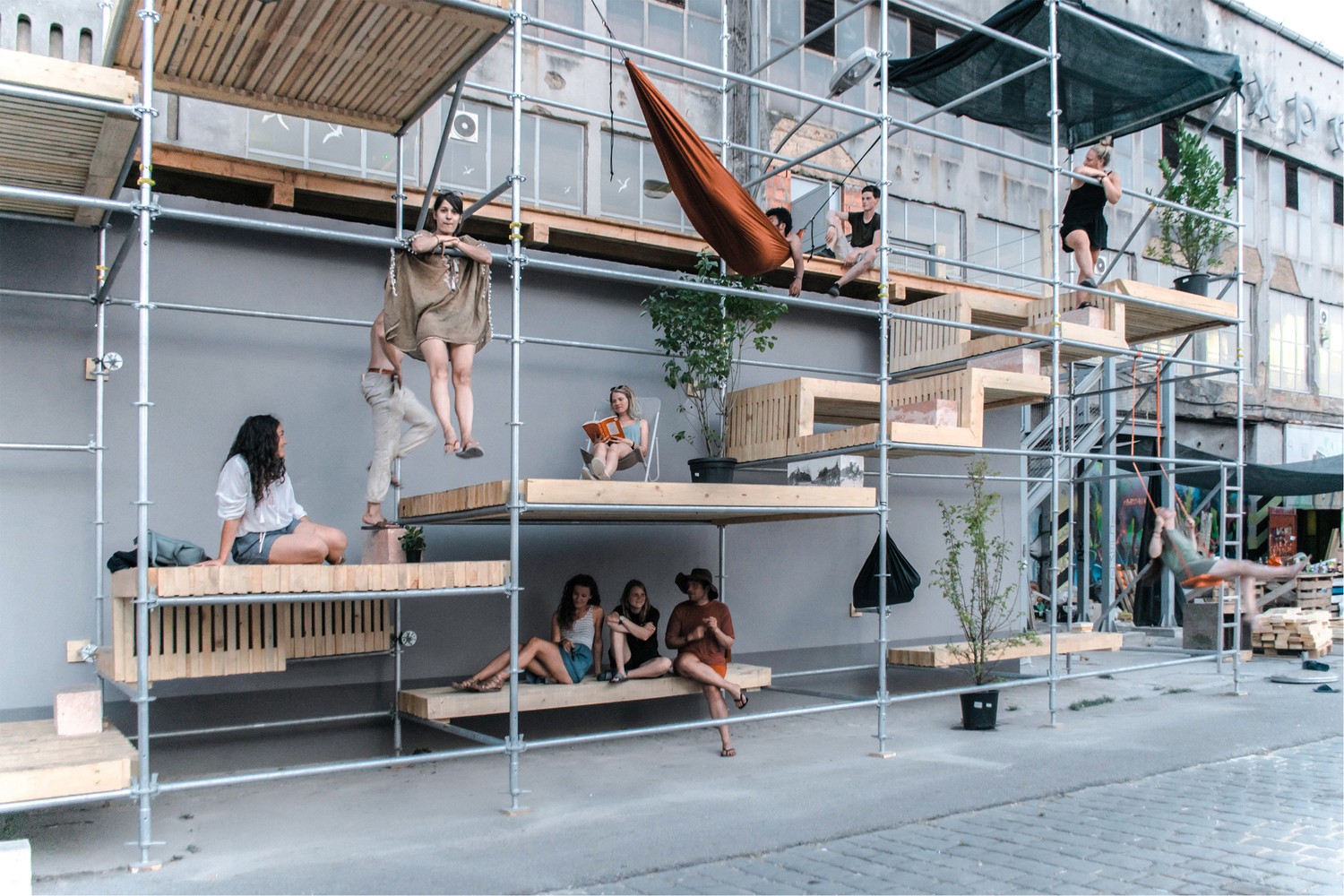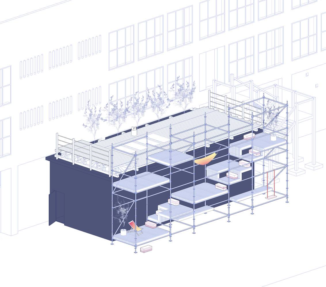Level Up 沒有創(chuàng)建新的公共城市區(qū)域,而是將重點(diǎn)放在再生現(xiàn)有空間。它創(chuàng)造了一個(gè)具有工業(yè)美學(xué)的三角洲陽(yáng)臺(tái),作為一個(gè)公共的立面。在一個(gè)被建筑形式的持久性定義著的時(shí)代,Level Up推崇短暫的城市主義,邀請(qǐng)每個(gè)人思考材料和空間的不持久性。對(duì)物質(zhì)的暫時(shí)性質(zhì)的認(rèn)識(shí)是城市發(fā)展過程中不可缺少的一部分嗎? Level Up 不僅僅是一種建造理念,更是對(duì)這種哲學(xué)的追求。