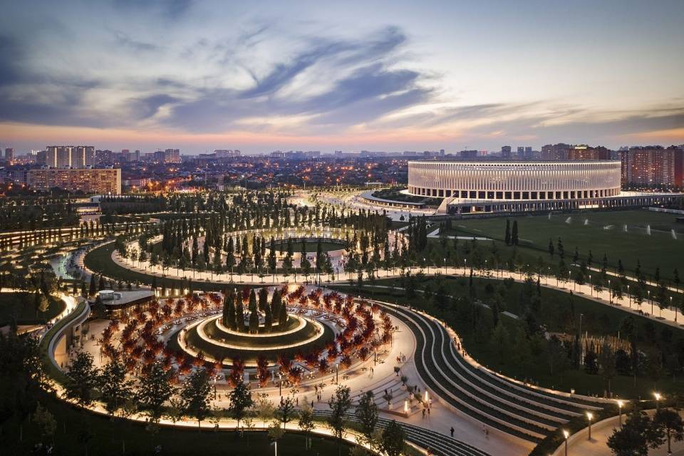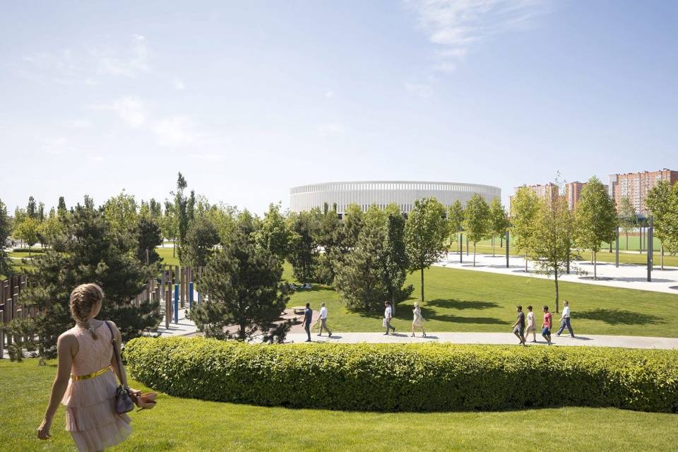 這座多功能公園位于俄羅斯南疆城市克拉斯諾達(dá)爾,直接相鄰于由gmp為當(dāng)?shù)刈闱蚓銟?lè)部設(shè)計(jì)的體育場(chǎng)(點(diǎn)擊查看克拉斯諾達(dá)爾體育場(chǎng)項(xiàng)目)。體育場(chǎng)公園占地34公頃,可容納1800名訪客。項(xiàng)目實(shí)施分為五期工程,自2016年第一期園區(qū)對(duì)公眾開(kāi)放后,這一生態(tài)公園已成為遠(yuǎn)近聞名且廣受歡迎的體育休閑場(chǎng)所。