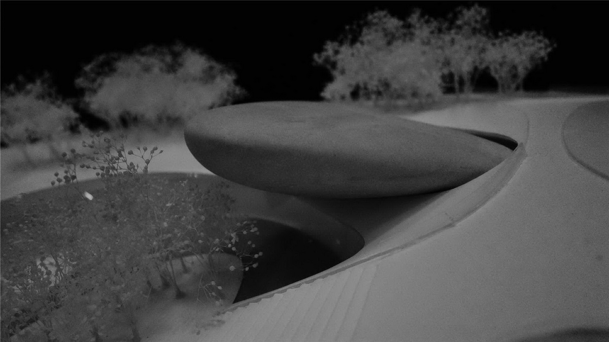 不同規(guī)格和高度的展覽空間讓整個(gè)綠坡隨之起伏,石群穿越綠坡或漂浮在綠坡之上,串聯(lián)了整個(gè)覆土廣場(chǎng)。