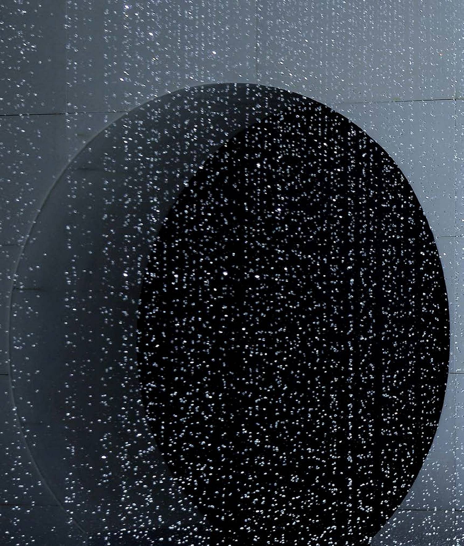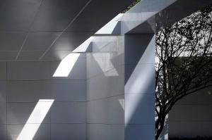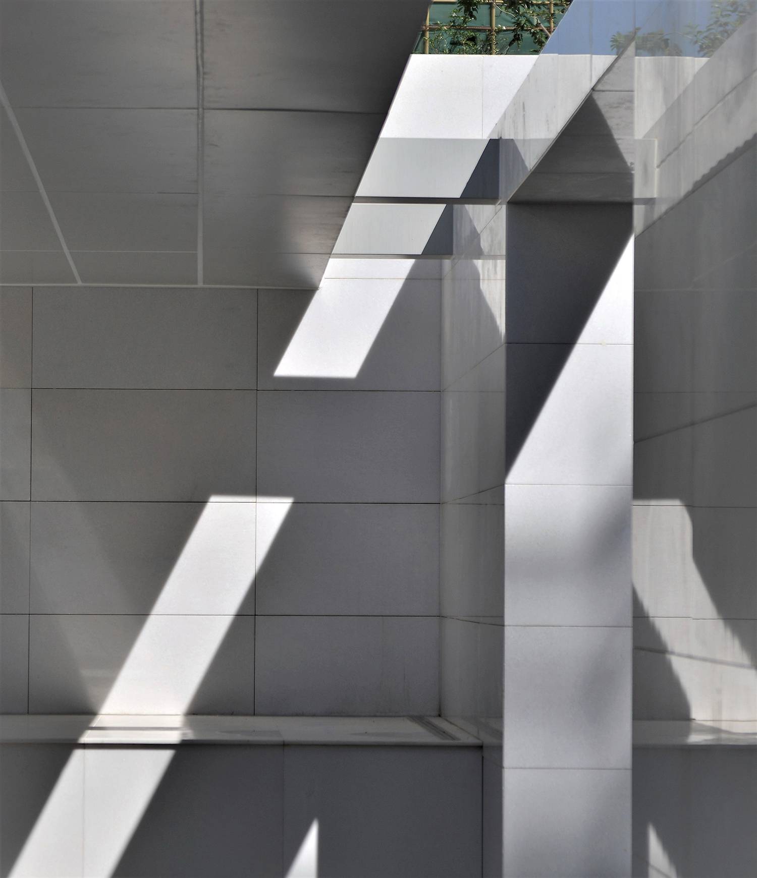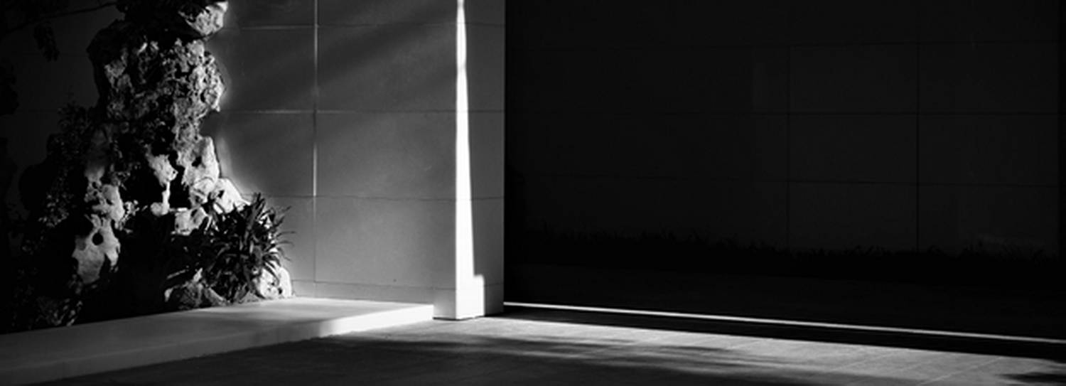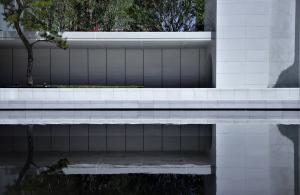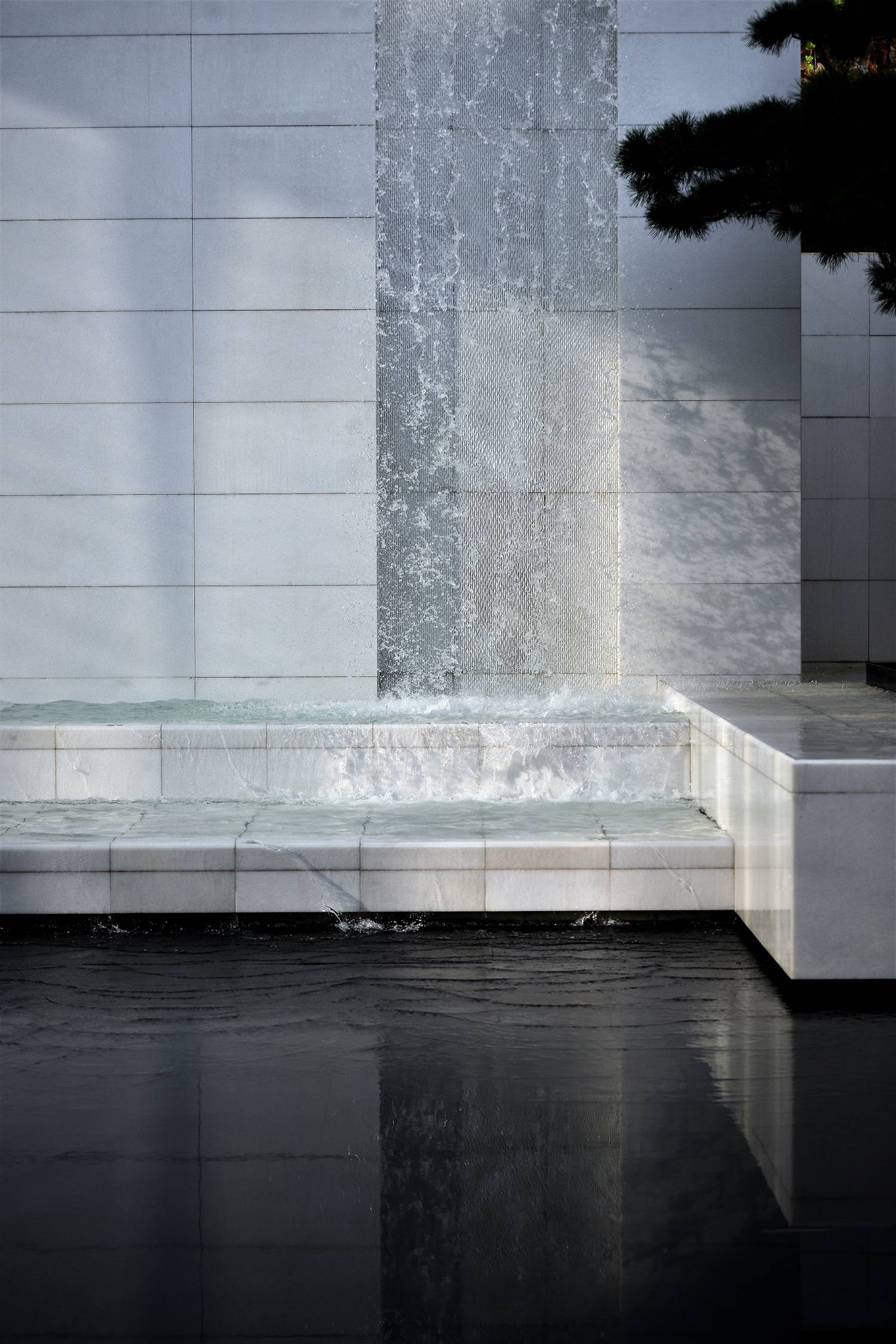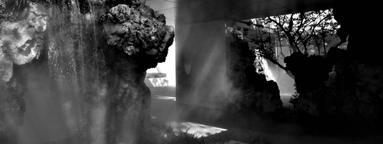 The sculptural stone stands still and the light pours through the moon gate into the corridor, allowing people to feel totally at ease in this quiet and peaceful space.