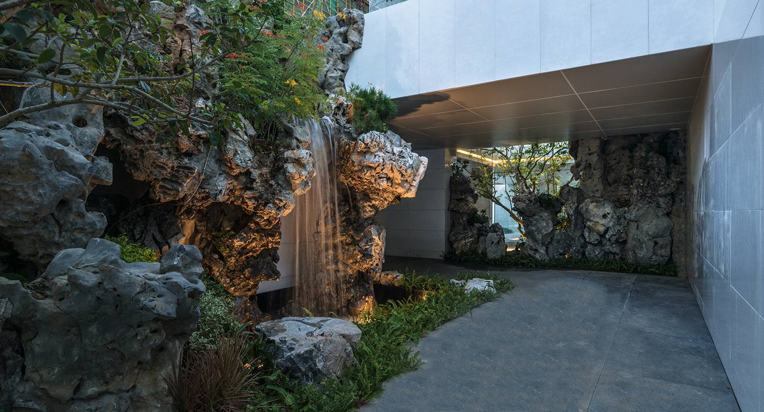 Based on the theory of landscape painting, the designer hopes to create a three-dimensional “travel route” which will lead people to pass through the corridor, step up the terrace and overlook the whole space from the top.