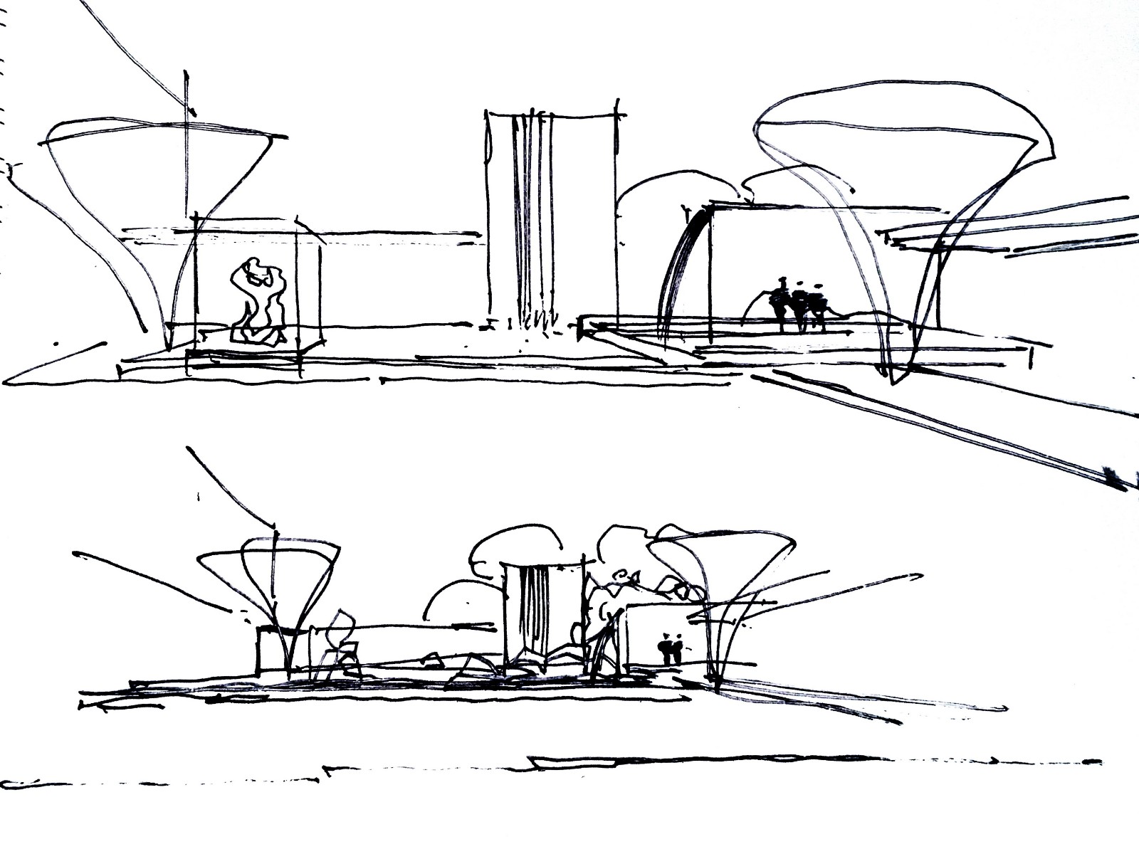 設(shè)計草圖是一個中間的銜接環(huán)節(jié),讓前期的概念原型與后期的物理空間營造實現(xiàn)有效過渡。因此,一遍遍推敲,一次次試錯,一回回修改,就是要通過設(shè)計活動,把“游”與“營造”緊密串聯(lián)起來。