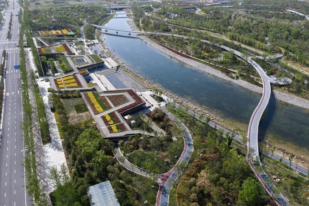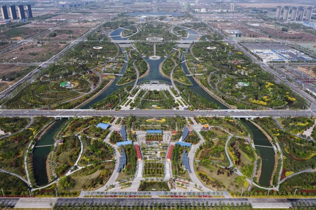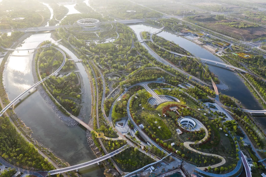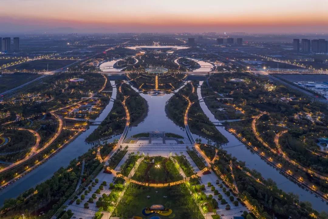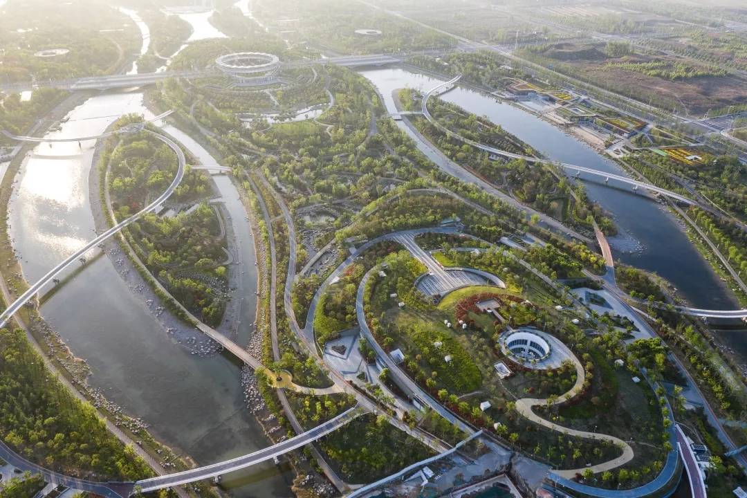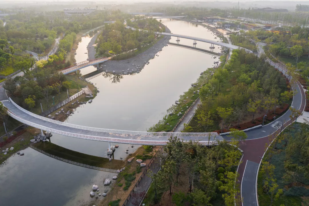 鄭州市當(dāng)時準(zhǔn)備在2017年舉辦第十一屆中國國際園林博覽會,博覽會的主展區(qū)也坐落在航空港區(qū)域,會場距離雙鶴湖不遠(yuǎn),所以當(dāng)時就計劃把雙鶴湖中央公園規(guī)劃設(shè)計為屆時園博會的B展區(qū)。主展區(qū)的主要功能就是展覽,迎接參展商與游客到訪,B展區(qū)可以作為疏解人流,展示區(qū)域文化特色,未來可以帶動周邊用地與新城的發(fā)展。雙鶴湖公園就成為了一個園博會的同步建設(shè)項目。