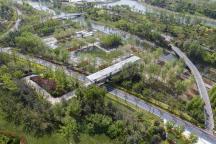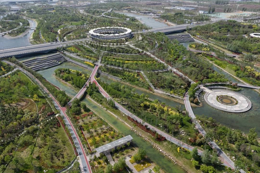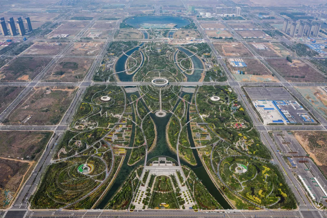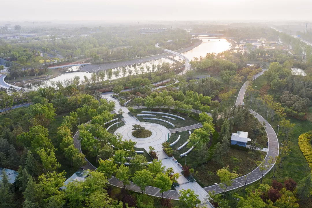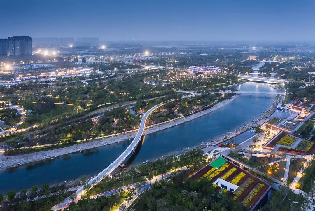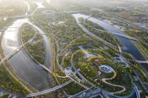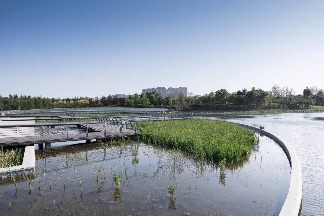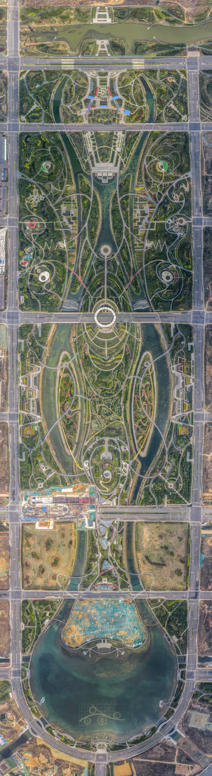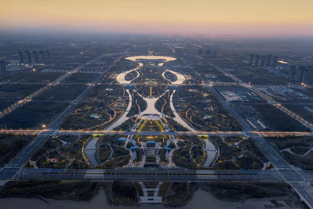 位于鄭州航空港區(qū)的雙鶴湖中央公園(一期)占地面積約150公頃,該公園同時為第十一屆中國國際園林博覽會(鄭州)的B展區(qū)。雙鶴湖中央公園景觀設(shè)計強(qiáng)烈的中軸秩序,結(jié)合垂直生長的豎向空間層次,軸線明確、大氣疏朗,是一個有機(jī)生長的彰顯中原特色的城市中央公園。