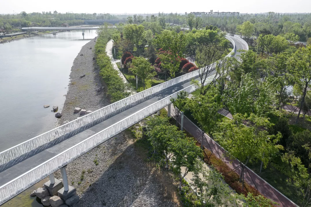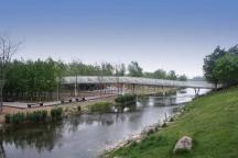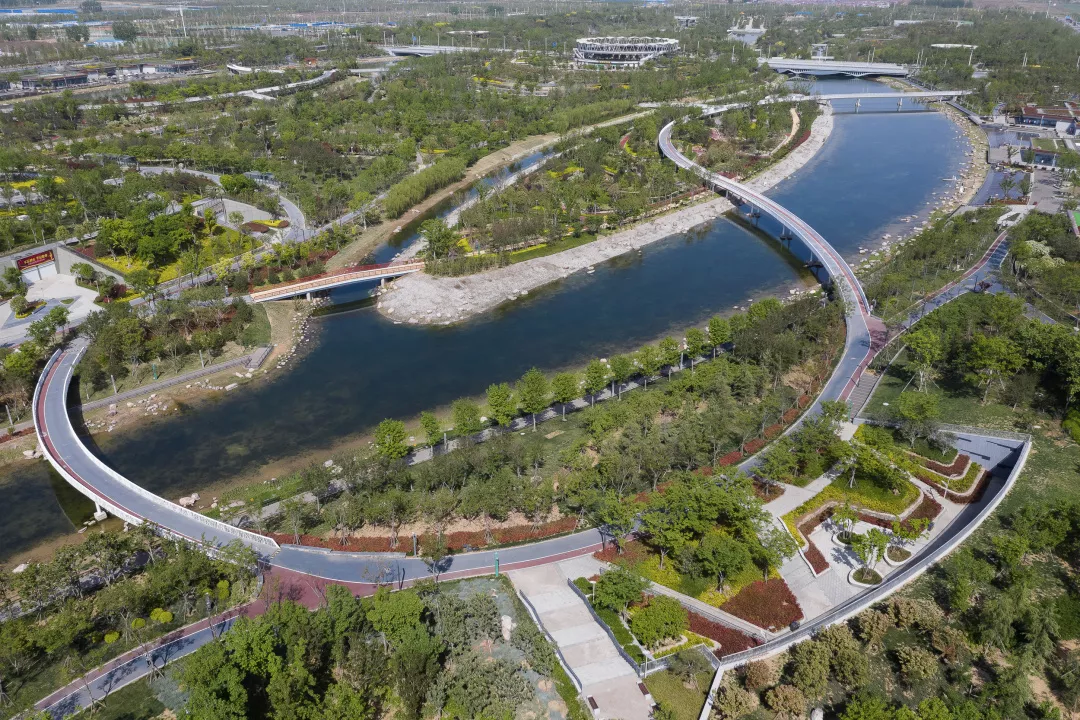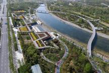 陸偉宏: 整個項目用地比較狹長,水系也是狹長伸展,我們運用了很多線性空間的設(shè)計手法,設(shè)計了很多復(fù)合、立體的綠道系統(tǒng)。鄭州所處的中原地區(qū)本身氣象條件不像西南、東南地區(qū)溫暖濕潤,園林植物的選擇都收到了很多限制,在植物設(shè)計方面我們也突破性的采用了一些新品種和新的組合種植方式。