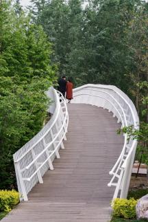 陸偉宏: 橋梁系統(tǒng)是公園交通系統(tǒng)的一部分,與公園的豎向設(shè)計緊密結(jié)合,可以說如此豐富的豎向設(shè)計必然會產(chǎn)生豐富的橋梁系統(tǒng),這個橋梁系統(tǒng)包括:城市市政橋梁,綠道橋梁,園林景觀橋等。作為園路系統(tǒng)的一部分,不同風(fēng)貌和特點的橋梁作為“點”接入到路網(wǎng)結(jié)構(gòu)的“線”中。