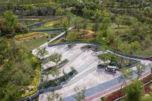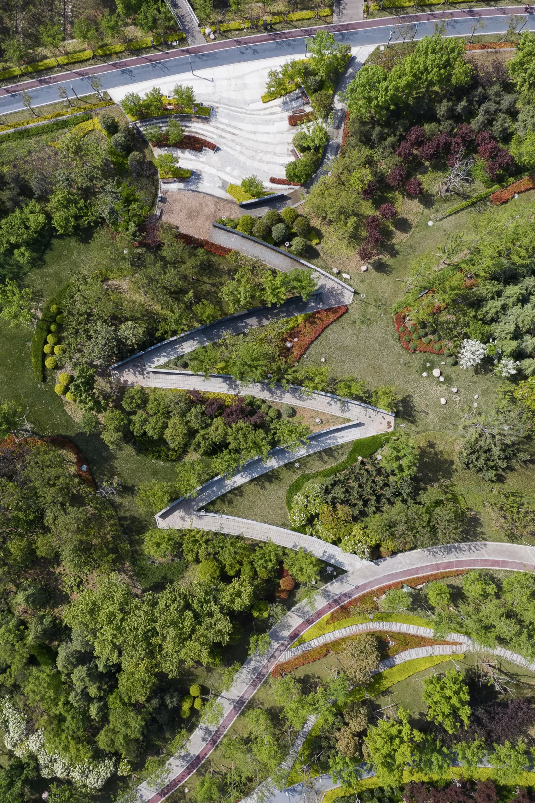 陸偉宏: 我們在設(shè)計之初明確了公園結(jié)構(gòu)的大框架,這個框架包括針對豎向、河道、交通系統(tǒng)和地下空間的規(guī)劃。在這個大框架的指導(dǎo)下,我們進(jìn)一步結(jié)合人的行走體驗設(shè)計地形空間與溝通邏輯,創(chuàng)造出“移步換景”的園林空間體驗。造園的過程要求在“相地”的基礎(chǔ)之上做適當(dāng)?shù)呢Q向設(shè)計,很多公園的豎向設(shè)計更多是基于平面的一種設(shè)計,該項目的豎向設(shè)計因為考慮的因素眾多,最終形成了多變的豎向空間體驗。