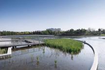 陸偉宏: 雙鶴湖中央公園占地面積很大,目前建成的部分僅僅是公園的一期區(qū)域。它的設(shè)計不是簡單的做一個“大公園”,而是要結(jié)合城市區(qū)塊的發(fā)展進(jìn)行統(tǒng)一考慮。從景觀都市主義的角度來說,這個公園作為藍(lán)綠基礎(chǔ)設(shè)施先于城市建設(shè),也將伴隨城市一起成長一起發(fā)展。在公園建成后我也曾多次回訪,觀察到公園的養(yǎng)護(hù)、使用以及植物生境的生長都呈現(xiàn)出良性的發(fā)展趨勢,可以預(yù)見在未來城市空間不斷完善后,這個公園將以更好的生態(tài)環(huán)境被市民所使用。