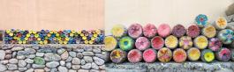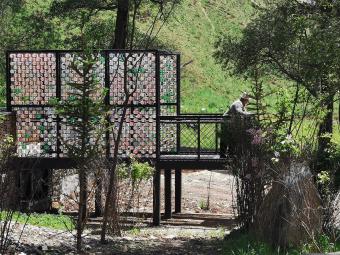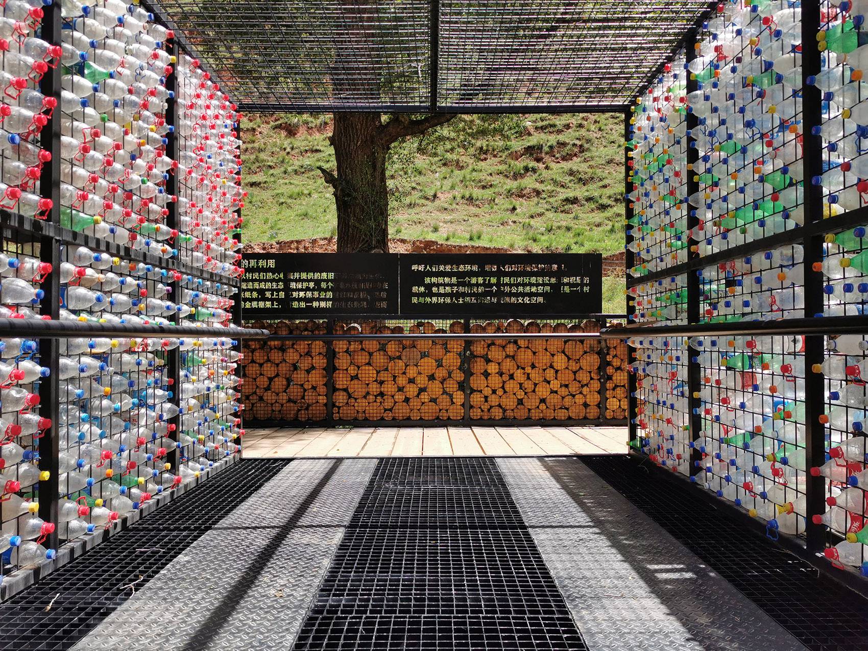 白楊溝村屬于多民族聚居的環(huán)境特色保護(hù)型村莊。我們在設(shè)計(jì)之初通過走訪調(diào)研發(fā)現(xiàn)留守民參與村莊建設(shè)的意愿強(qiáng)烈,但不知從何入手,因此設(shè)計(jì)團(tuán)隊(duì)在建設(shè)前期進(jìn)行了一場從廢物利用入手的藝術(shù)裝置營造實(shí)驗(yàn)。景觀建筑師與社區(qū)營造團(tuán)隊(duì)攜手以一場“會說話的墻”的活動展開了關(guān)于村莊環(huán)境治理的互動裝置構(gòu)思,環(huán)抱裝置的材料就是游客丟在村莊的飲料瓶,因?yàn)樗芰现破吩诘叵卵诼癯^一百年也無法分解,我們發(fā)動村民在搜集來的飲料瓶上進(jìn)行彩繪,用這些百年無法分解的瓶子美化院墻與建造景觀設(shè)施,以一系列參與式的設(shè)計(jì)藝術(shù)活動展示“廢棄物”的另一面,重新凝聚關(guān)于美好家園環(huán)境保護(hù)與治理的民族共識,建立村民與自然環(huán)境的集體記憶,營造共享共建的村莊環(huán)境治理小閉環(huán)。