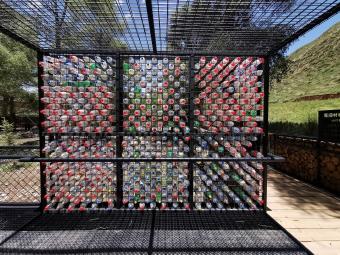 ▲飲料瓶固定在金屬網(wǎng)內(nèi),形成特殊的立面