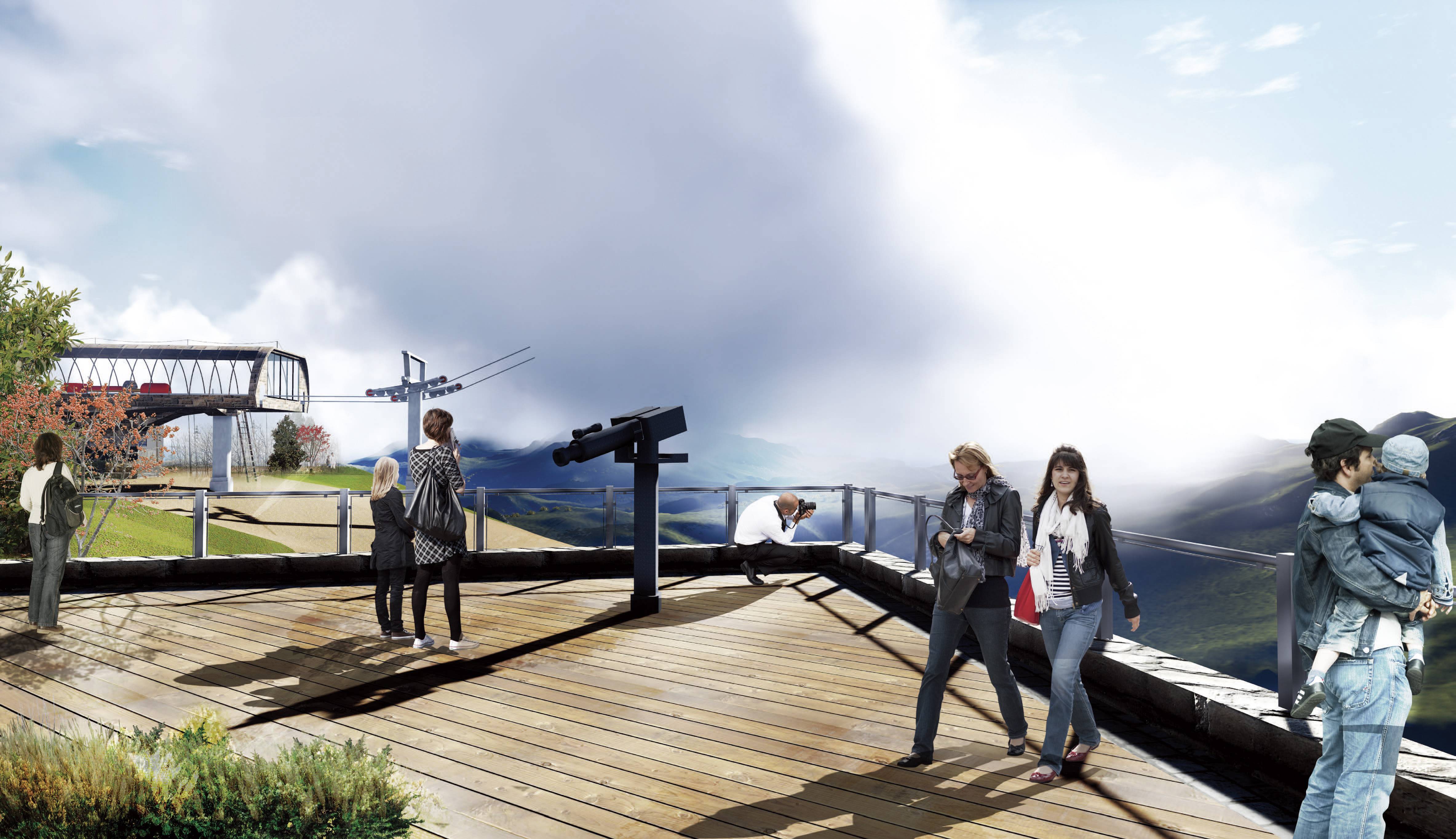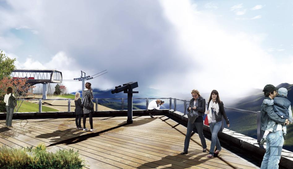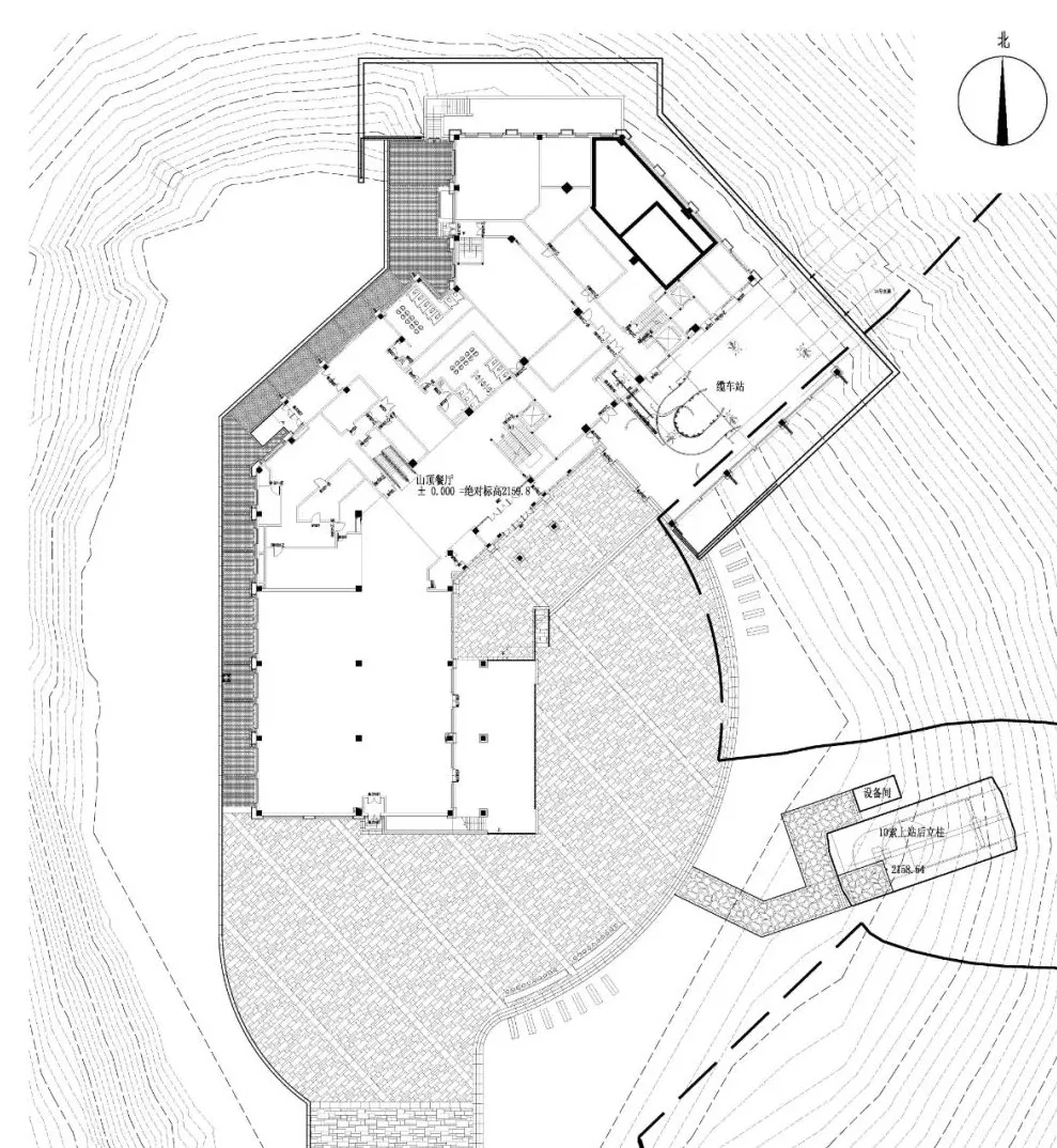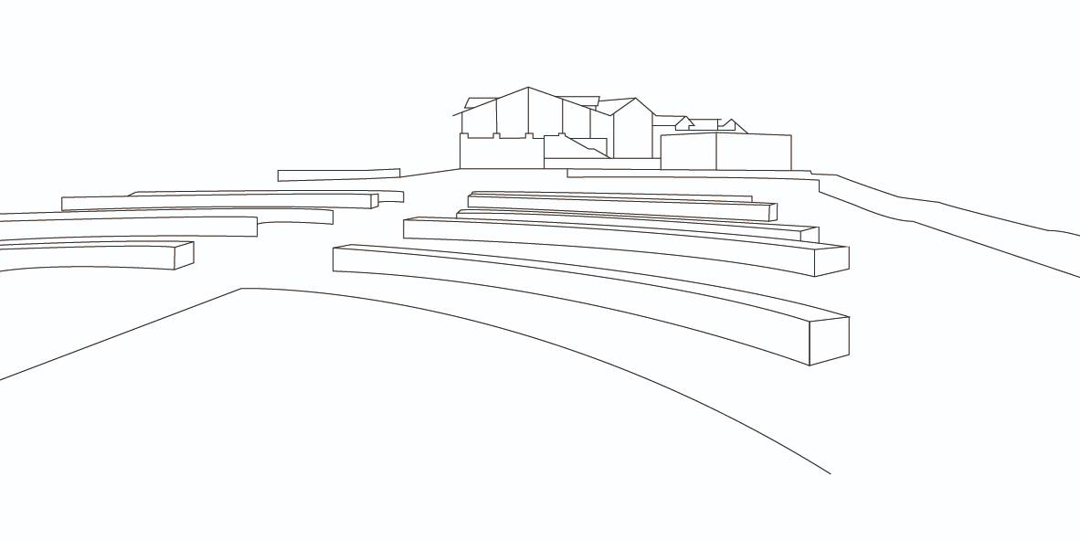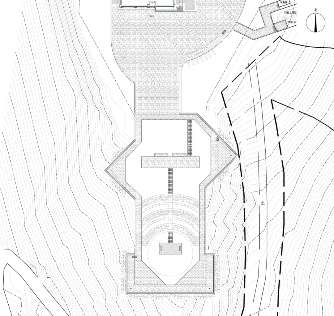山頂視域開闊,處處是景色優(yōu)美的視點,360°全景呈現才能體現北方山脈的雋秀和延綿。因此我們設計了空間完全開敞的廣場和露臺,配合山地自身5米左右的自然高差,連接建筑與風景,連接自然與人。