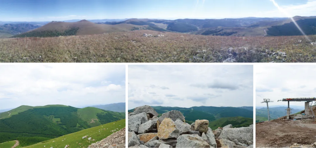 項目位于河北崇禮玉石梁海拔2160米的山頂,山下夏季平均溫度23-25℃,涼夏宜人,而山上則坐擁頂峰,一覽眾山小。場地內有北美山地風格的餐廳建筑,得天獨厚的自然環(huán)境讓場地獨一無二,設計要做的就是挖掘并尊重這樣的場地特質。