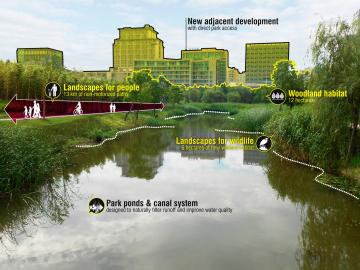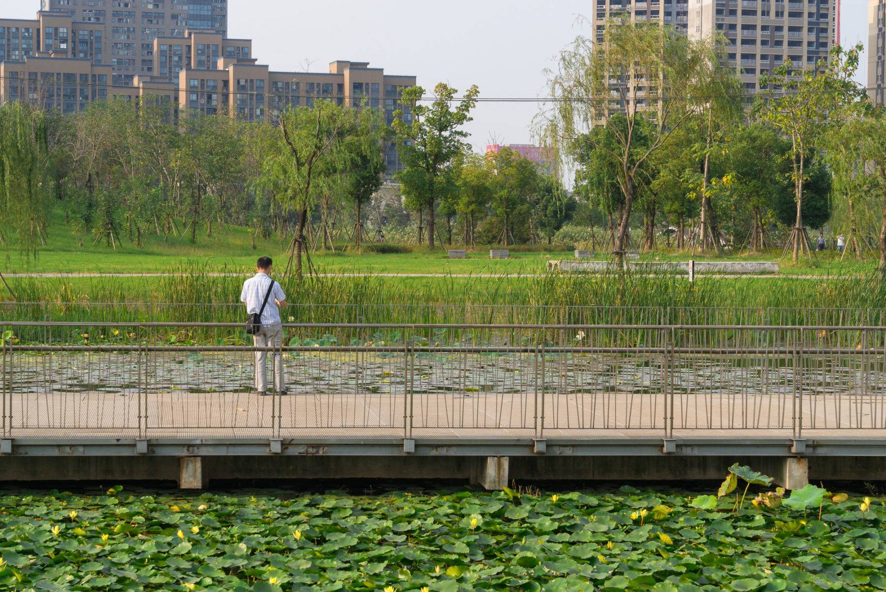公園內(nèi)的多樣豐富的濕地,通過各個開放式和封閉式系統(tǒng)最大程度的整合水資源、植被和泥土,從而提升濕地邊緣的過濾能力;此外,濕地也能同時為周邊的城市雨洪收集和管理服務(wù)。
