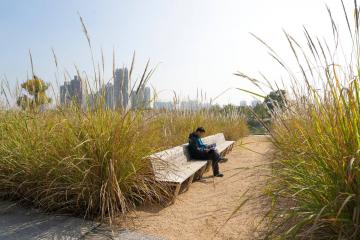 格羅福:最大的挑戰(zhàn)在于如何將基地與更大范圍的水文系統(tǒng)間的關(guān)系?;亟邮蘸拥郎嫌蔚拇罅课廴?,我們必須運用創(chuàng)造力,構(gòu)思如何建立一個可發(fā)揮修復(fù)功能的濕地系統(tǒng),務(wù)求在凈化水質(zhì)的同時,讓濕地成為開放景觀的一部分。至于高地植物群落的種植方案,因為基地原來幾乎沒有成熟的喬木,我們栽種了21,000多棵鄉(xiāng)土物種的樹木,希望成熟的喬木樹冠可以為林下植被提供生長條件,從而支持林地環(huán)境的發(fā)展。