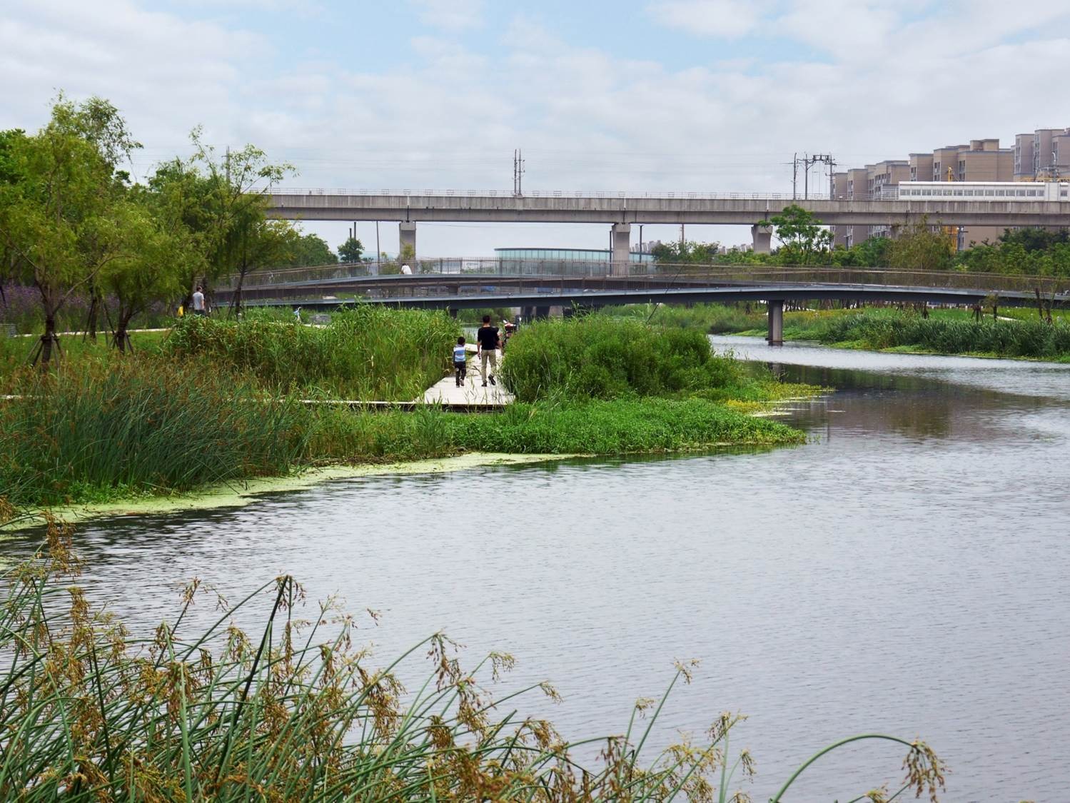 格羅福:由于河道上游充斥著各種各樣的污染物,要按照項目要求的凈化效能而設(shè)計,難度實在很高,但這樣卻促使我們?nèi)ド钊肓私鈴V域的水文系統(tǒng)。我們制定的解決方案之一是創(chuàng)造獨立的封閉式水系統(tǒng)。設(shè)計團隊中的生態(tài)學(xué)家和工程師在進行計算后,指出封閉式水系統(tǒng)能輕易處理公園和周邊城市環(huán)境所收集的雨水;此外,張韜與華東師范大學(xué)的區(qū)域生態(tài)恢復(fù)實驗室合作花了一年時間實地采樣檢測。他們驗證了河道沿岸植物降解污染策略對水質(zhì)的改善。但如果將相同策略用于封閉式水系統(tǒng)上,效果更好——水質(zhì)不但可以大大改善,野生動物也得以紛紛回歸。