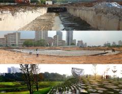 曾經(jīng)的混凝土排水渠不僅割裂了城市空間,同時(shí)也無法應(yīng)對暴雨災(zāi)害事件,而如今取而代之的奔騰河道不僅使公園的蓄水能力提升了40%,生物多樣性提高了30%,同時(shí)也讓人類活動(dòng)空間有了12%的增長。