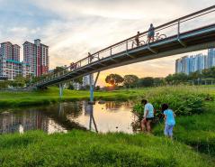 碧山宏茂橋公園是新加坡最受歡迎的中心地帶公園之一。建于1988年的公園最初是為了在碧山居住新區(qū)與宏茂橋區(qū)之間形成綠色緩沖帶,并提供一定的休閑娛樂空間。然而,排水管道猶如一條粗線,將公園明顯的分割開來。