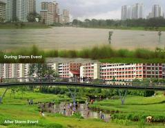 通過熱帶景觀設(shè)施,碧山宏茂橋公園展示了一種新的熱帶城市水文景觀處理方式,這種方式同時(shí)滿足了新加坡水獨(dú)立供給與洪水暴漲治理的雙重要求,同時(shí)在緊湊的城市中創(chuàng)造出了河岸生態(tài)系統(tǒng)。再開發(fā)之前,加冷河的混凝土身軀將公園和生活社區(qū)清晰的分割開來,這種狀態(tài)亟待改善。設(shè)計(jì)團(tuán)隊(duì)與公園和水利部門考慮重新使用傳統(tǒng)方法來最大化滿足土地,經(jīng)濟(jì)和人文需求。這種拆除運(yùn)河混凝土溝渠,修復(fù)自然河道的大膽舉措,不僅使其花費(fèi)比運(yùn)河改造設(shè)計(jì)減少了15%,同時(shí)還增大了容量,使其超過了目標(biāo)承載能力。同時(shí)河流也成為公園的一部分,增加了社區(qū)對城市水系統(tǒng)的親和力。