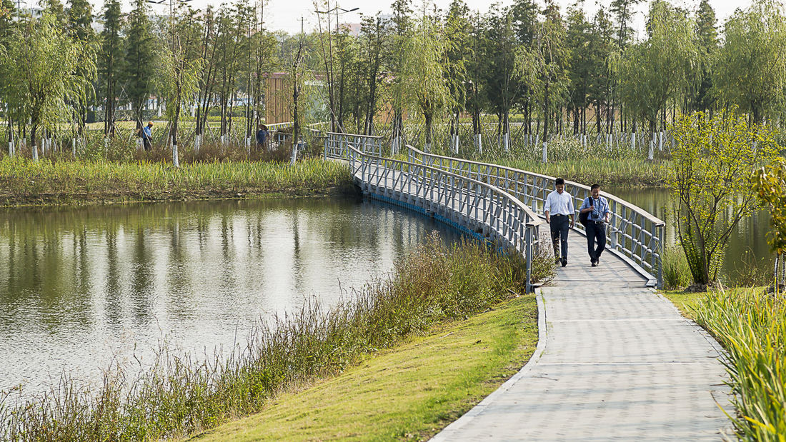 整個地塊內的設計從生態(tài)方面著手,為動物提供了野外生存的環(huán)境,使這片區(qū)域成為一個重要的科考教育基地,為吳淞江沿岸長廊遠期的規(guī)劃和發(fā)展提供了示范引導作用,從而為經(jīng)濟文化環(huán)境發(fā)展帶來質的飛躍。項目于2010年完成設計,率先提出生態(tài)水處理與徑流控制理念,是城市雨洪管理的先行者。也與近年國家推行的海綿城市概念不謀而合,成為其重要的實踐依據(jù)和成功經(jīng)驗。