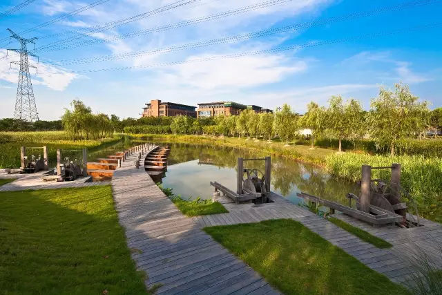 項目位于昆山吳淞江沿岸。吳淞江是長江三角洲北部一條重要的水運通道,因其獨特的地理區(qū)位優(yōu)勢,河道沿岸布滿了眾多的工廠,基地受后工業(yè)時期生產(chǎn)和工業(yè)運營的污染,基地內淪陷為坑洼不平的取土坑和渾濁的水網(wǎng),修復和重建這片濱水空間,使土地價值和環(huán)境品質得到更好的利用刻不容緩。