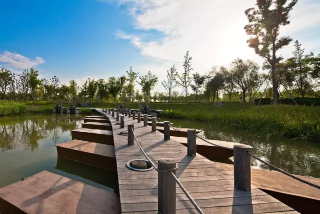 項目模擬了自然水處理的過程,起到了河流之腎的作用,有效地清理了河道淤泥以及工業(yè)排放廢棄物,有力地提升了河道下游公園的品質。通過一連串的池塘和河道,污水經(jīng)過沉淀池、曝氣池、含氧和厭氧環(huán)境的生態(tài)處理等各種設施,污染物被清除,水體得以純凈。