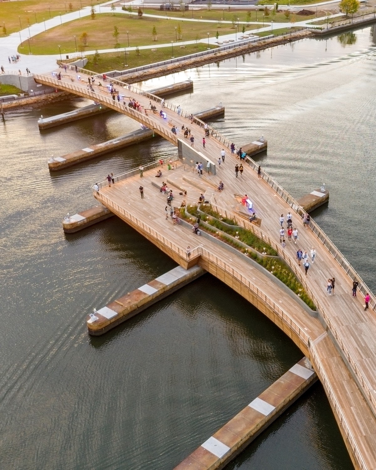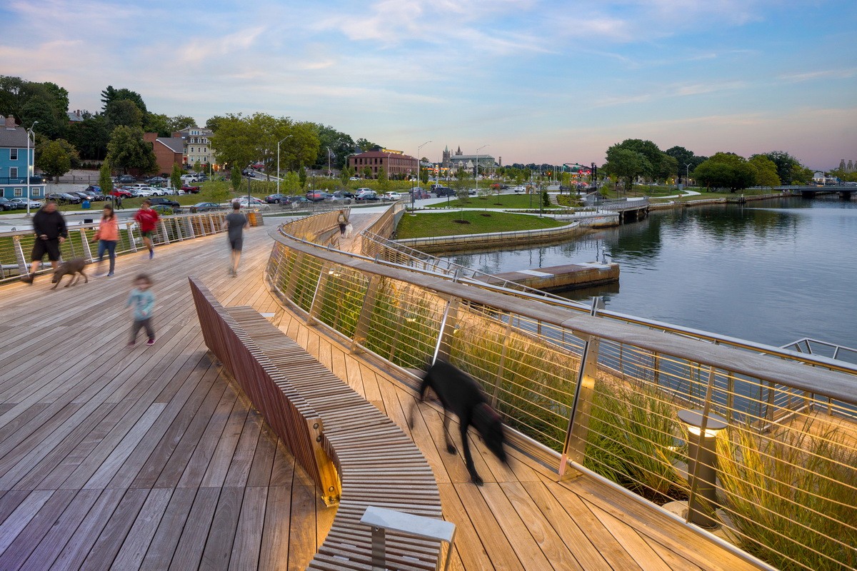2019年8月普羅維登斯河人行橋開通,隨之而來的活動大量增加,這反映了明智的規(guī)劃與設(shè)計對社會和經(jīng)濟的催化效果。作為這座城市的紐帶,這座橋梁不僅在新的濱水公園之間建立了直接聯(lián)系,還為經(jīng)濟增長和方案干預創(chuàng)造了許多機會,鼓勵社區(qū)聯(lián)系和社會參與。