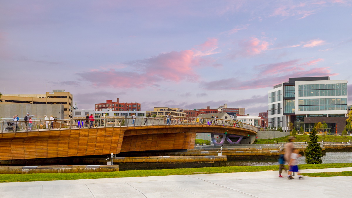 普羅維登斯市在發(fā)展藝術(shù)、文化和旅游業(yè)方面取得了成功,加之對濱水公園的愿景規(guī)劃,該市將成為一座國際文化圣地。橋梁設(shè)計的方法考慮到了眾多活動和節(jié)日的重要性,這些活動和節(jié)日與城市的過去、現(xiàn)在和未來密切相關(guān),如Sound Session、PrideFest、PRONK!以及WaterFire等。該橋梁以各種形態(tài)橫跨水面之上,從下城區(qū)和珠寶創(chuàng)新區(qū),到西濱水公園,再到東濱水公園,重新連接城市空間。