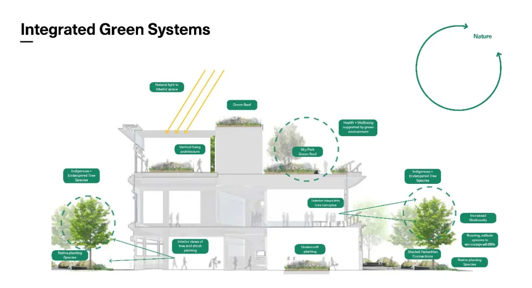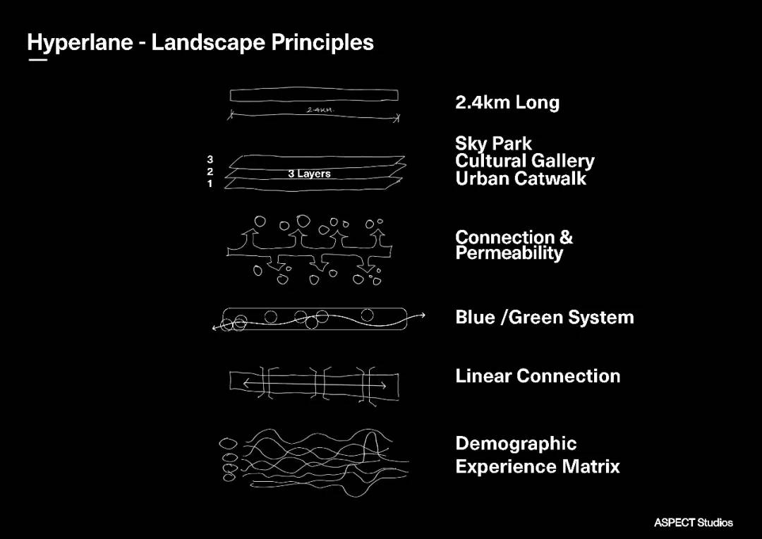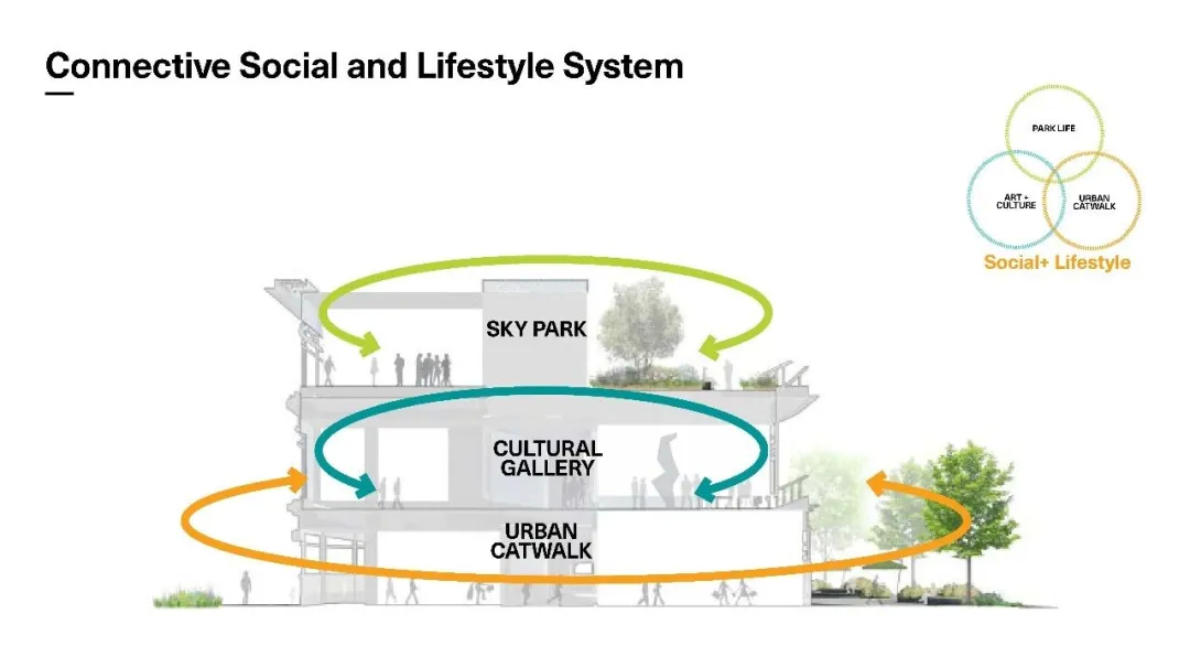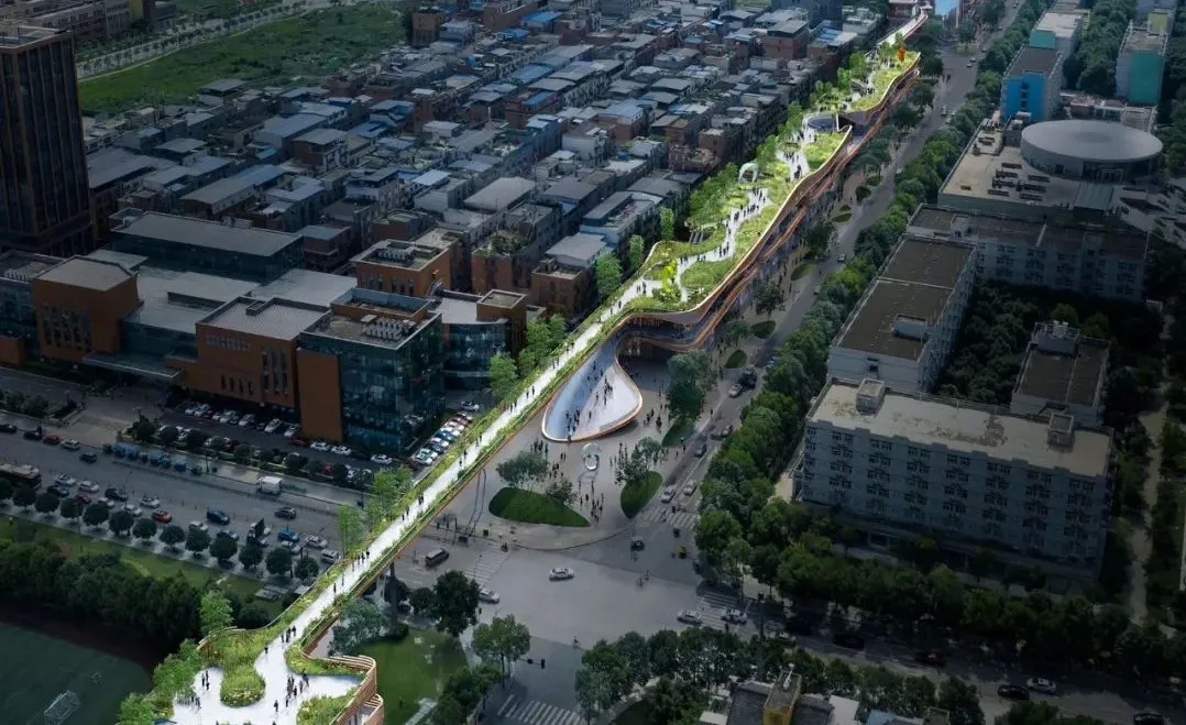 我們的愿景是構(gòu)建一座活力與綠意兼具的多層線性社交商業(yè)公園,呼應(yīng)川音文化藝術(shù)高地用戶特質(zhì),將這條2.4公里的開放式慢行系統(tǒng)天空花園成為打通川音校園及周邊社區(qū)以及新都東站交通樞紐的連接——實(shí)現(xiàn)高線公園形態(tài)、城市空間、商業(yè)空間三者的有機(jī)融合,為景觀都市主義實(shí)踐帶來新的契機(jī)。
