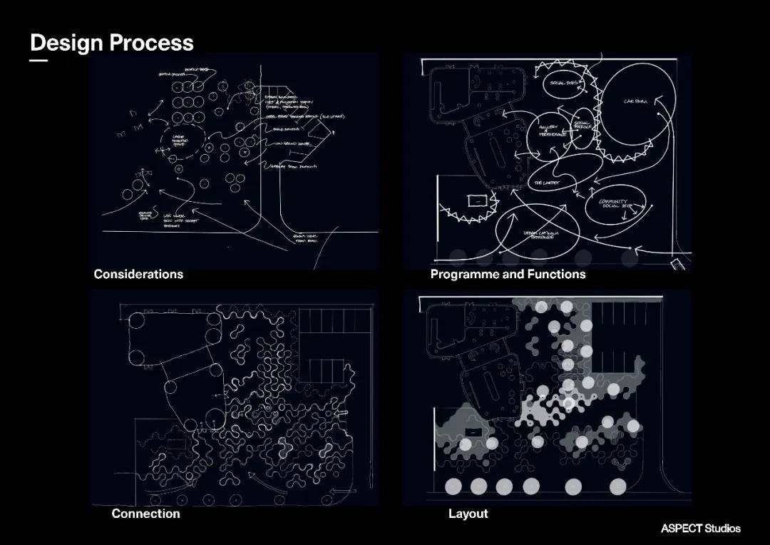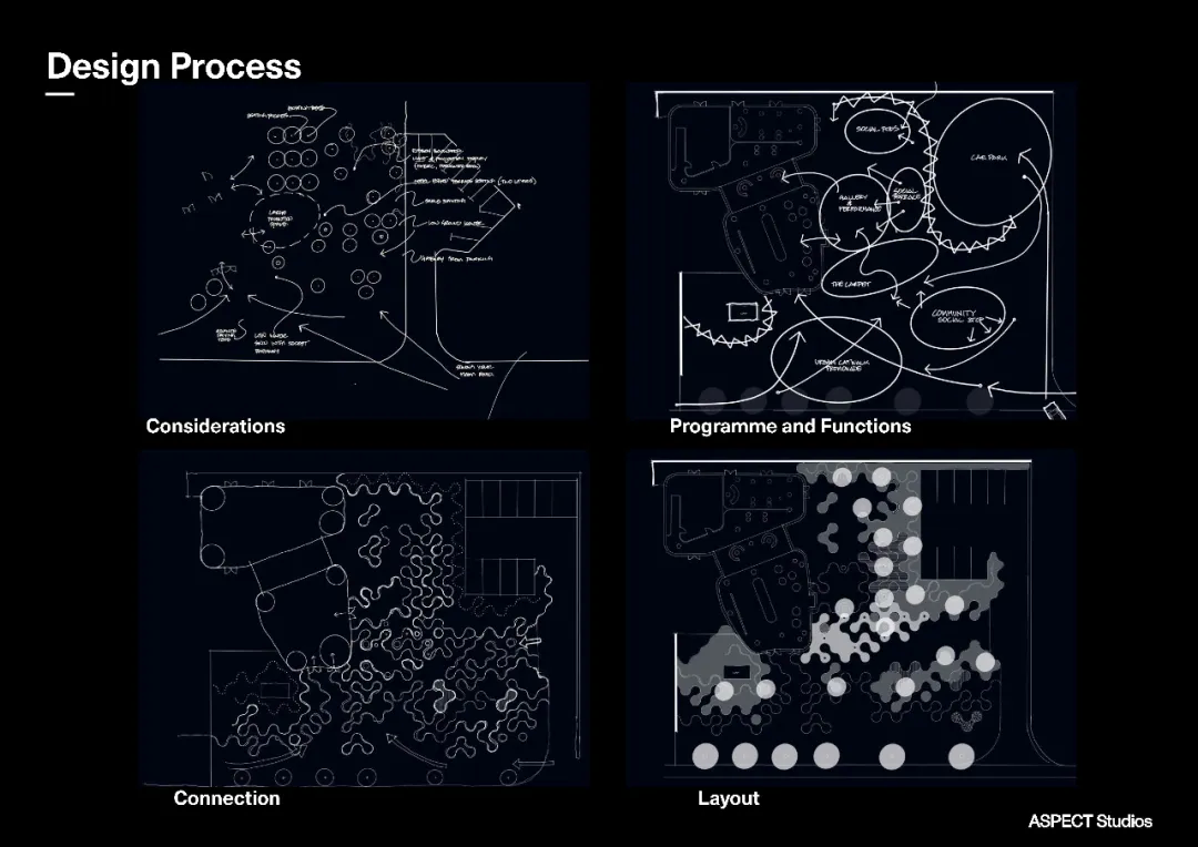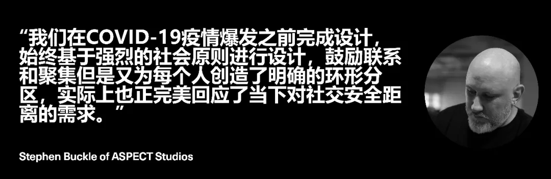 城市靈感空間,兼?zhèn)淞伺R時(shí)活動(dòng)和永久性展廳的功能。作為社交體驗(yàn)和社區(qū)連接的特色樞紐,可容納一系列的年輕創(chuàng)意及音樂文化活動(dòng)。設(shè)計(jì)始于2019年新冠疫情發(fā)生之前,但在疫情結(jié)束后正式對(duì)外開放的展示區(qū),碰巧響應(yīng)了目前大形勢(shì)下的保持適當(dāng)距離的社交空間原則。