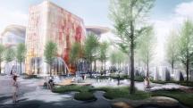 演藝空間被設(shè)計(jì)為可以定制時(shí)尚走秀伸展臺(tái)的彈性空間,與室內(nèi)設(shè)計(jì)相輔相成,鼓勵(lì)各種即興表演、藝術(shù)展覽、文創(chuàng)集會(huì)和露天劇場(chǎng)等戶外活動(dòng)。