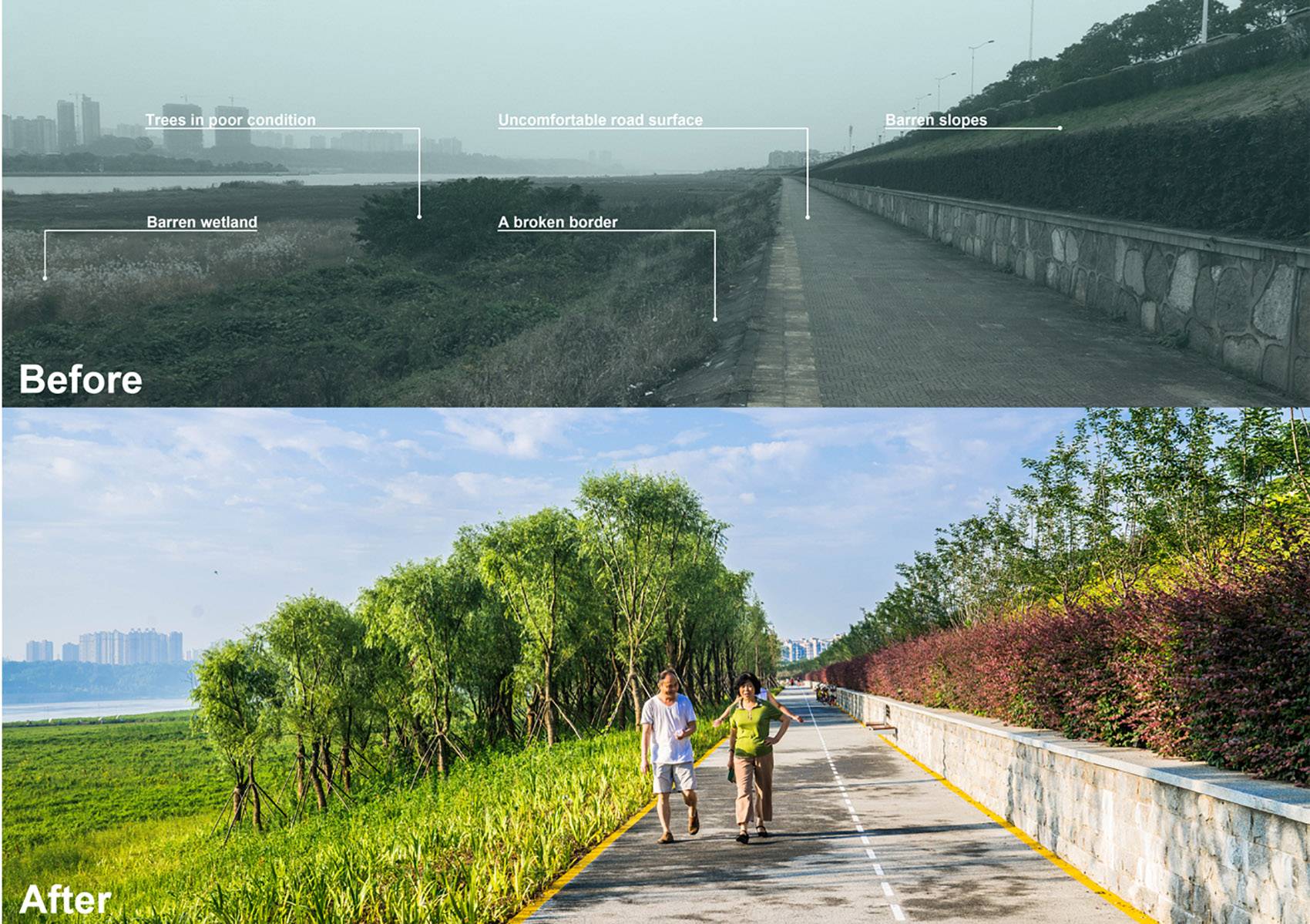 江灘公園使“荒地”變“綠洲”,消除了附近居民對生態(tài)環(huán)境的破壞行為,為游客提供了更健康的與自然親近的方式。
