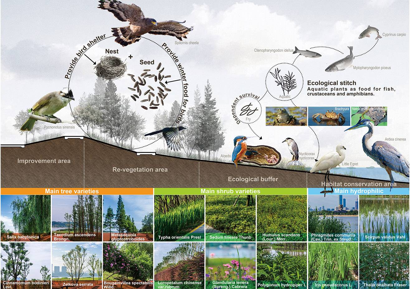 ▲不同水位高度選用不同的植物,提高江灘的物種多樣性和抗性