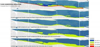 ▲ 設計師用軟件模擬了在不同水位場地的淹沒情況