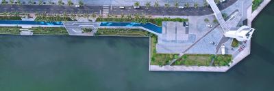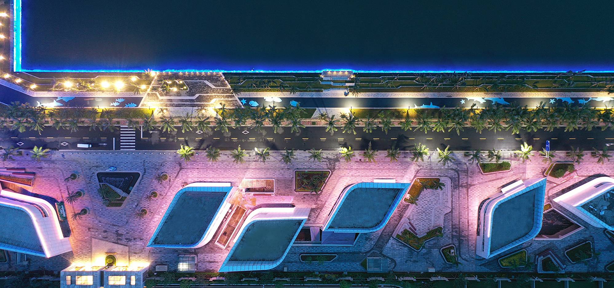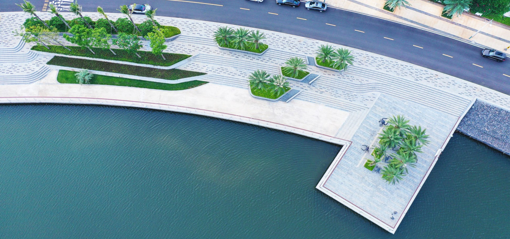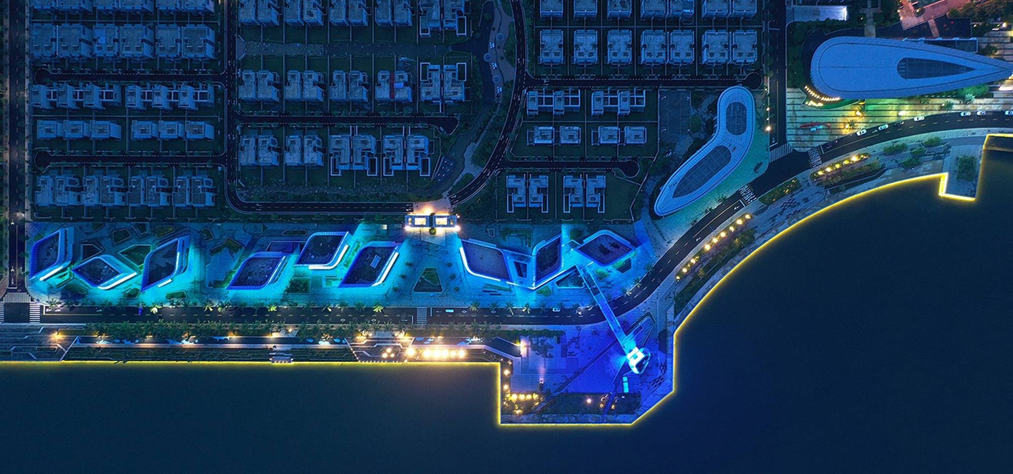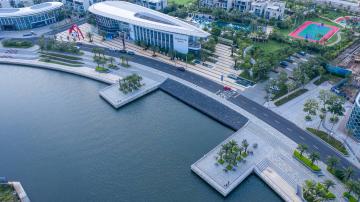在濱海景觀帶的規(guī)劃設(shè)計(jì)中,希爾設(shè)計(jì)團(tuán)隊(duì)整合基礎(chǔ)設(shè)施、建筑、碼頭等元素,引申出“折線”與“水波”形式作為場地造型的基調(diào),將海線、波心、魚群等海洋生物進(jìn)行提取,提出“魚行上岸”的創(chuàng)意,巧妙應(yīng)用于景觀序列表現(xiàn)、鋪裝臺階、海濱人行道中,塑造出簡潔流暢、極富韻律的雕塑肌理美感,將海洋風(fēng)情詼諧地點(diǎn)綴于景觀小品中,構(gòu)筑現(xiàn)代感十足的濱海帶狀景觀,時時處處營造愜意休閑的度假氛圍。