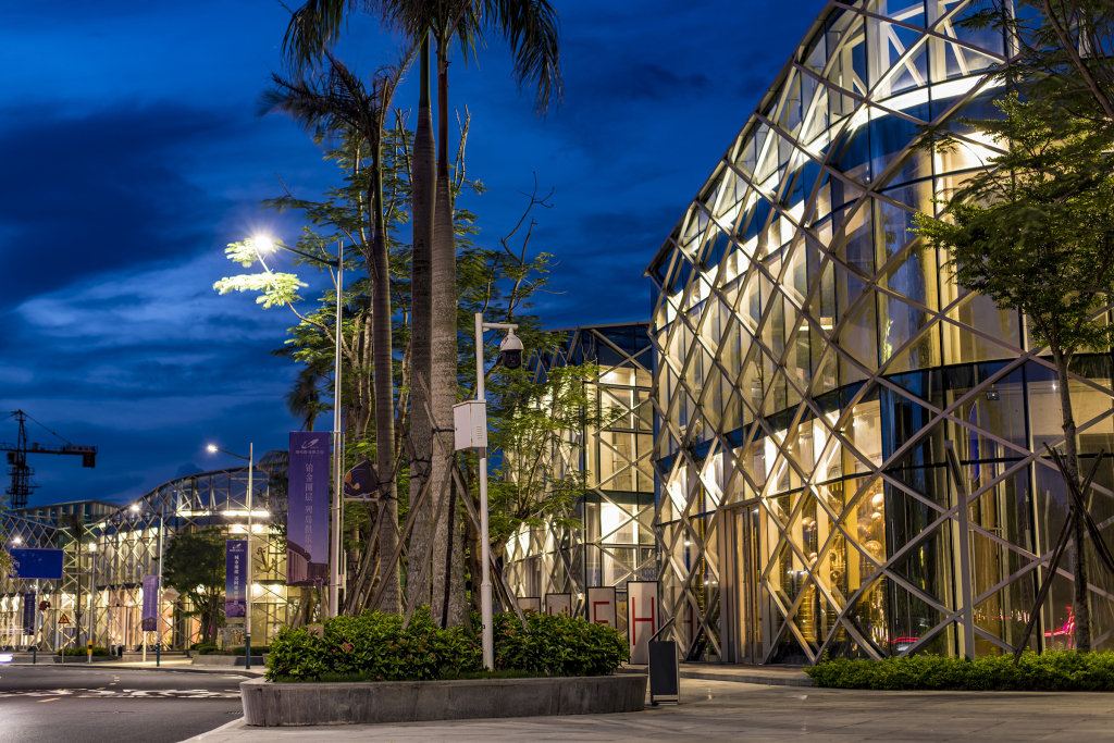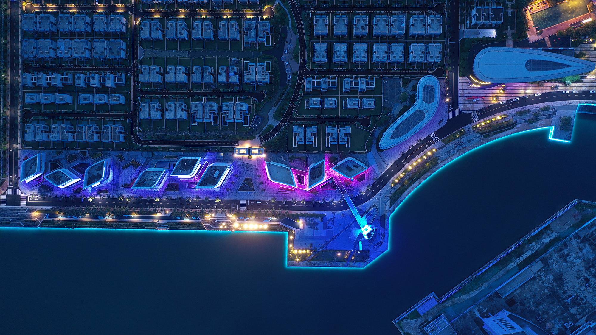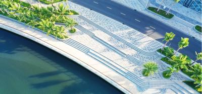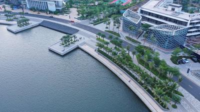 商業(yè)區(qū)與濱海景觀區(qū)是一個整體,同時又各有側(cè)重,在商業(yè)區(qū)景觀帶的設(shè)計(jì)中團(tuán)隊(duì)融合了國際化先進(jìn)手法,在精心布局與立體規(guī)劃之上,巧妙銜接,以商業(yè)帶動生活,賦予景觀新的生命力,營造現(xiàn)代、生態(tài)的復(fù)合型半島大城,納萬象繁華,聚海上都會。臨街道路的景觀轉(zhuǎn)換區(qū)域分為對外的沿街立面以及內(nèi)向型體驗(yàn)空間,其中對外的沿街立面主要強(qiáng)調(diào)整齊劃一的沿街道路景觀,對內(nèi)的體驗(yàn)空間由于視線較近,強(qiáng)調(diào)小尺度的空間營造。