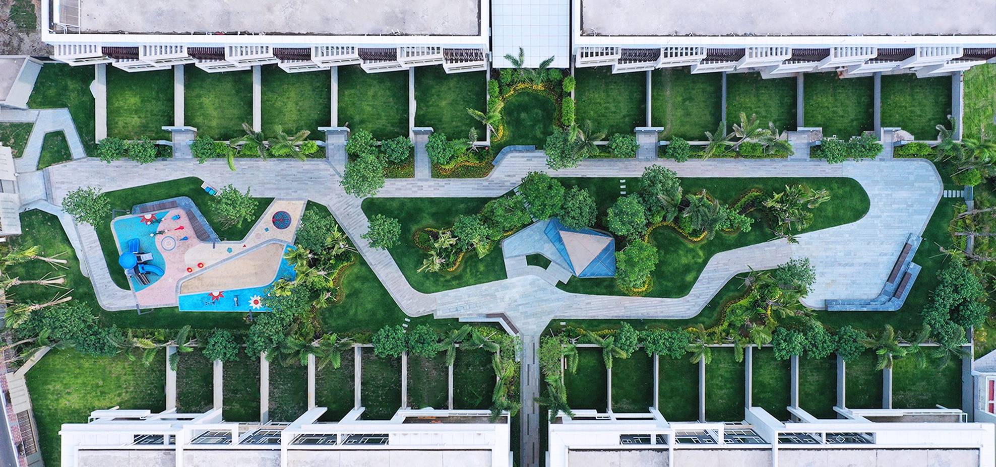 由于項(xiàng)目領(lǐng)域擁有大面積水系,以及江、河、海、灣四景匯聚的風(fēng)景岸線,設(shè)計(jì)應(yīng)用橋梁串聯(lián)奢華別墅島,其間包涵別墅、洋房、公寓多種業(yè)態(tài)選擇,建面約230-465㎡品級別墅、建面約46-125㎡海景墅式公寓同時上線。景觀實(shí)現(xiàn)了真正地將藝術(shù)、生態(tài)與濱海居住融合,整個設(shè)計(jì)綜合土地規(guī)劃深度創(chuàng)新,融合多維景觀推敲,錯落式布局,引入庭院景觀風(fēng)光,打造出有序列層次的空間體驗(yàn)界面,使生態(tài)濱水形象得以呼應(yīng),最終成就出濱江傍海、生態(tài)優(yōu)美的高端休閑度假區(qū),現(xiàn)代海岸島居生活圈和唯美文旅勝地。